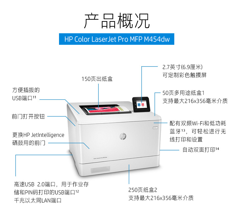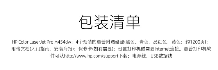 惠普/HP M454dw A4 彩色打印機(jī) 彩色打印 液晶顯示屏 自動(dòng)雙面打印 無(wú)線連接