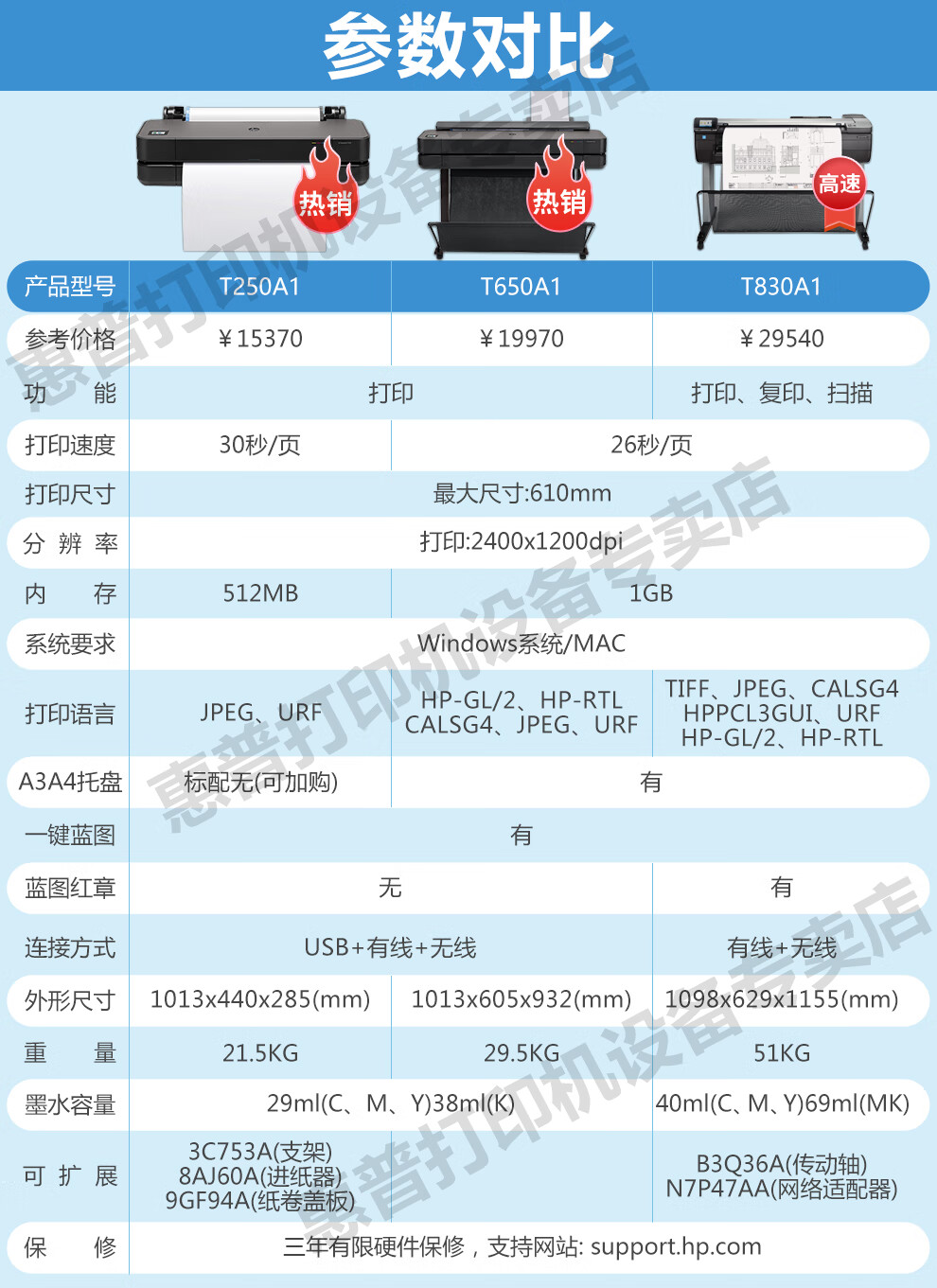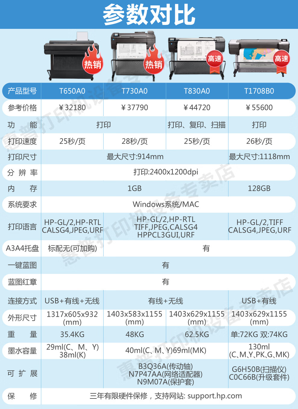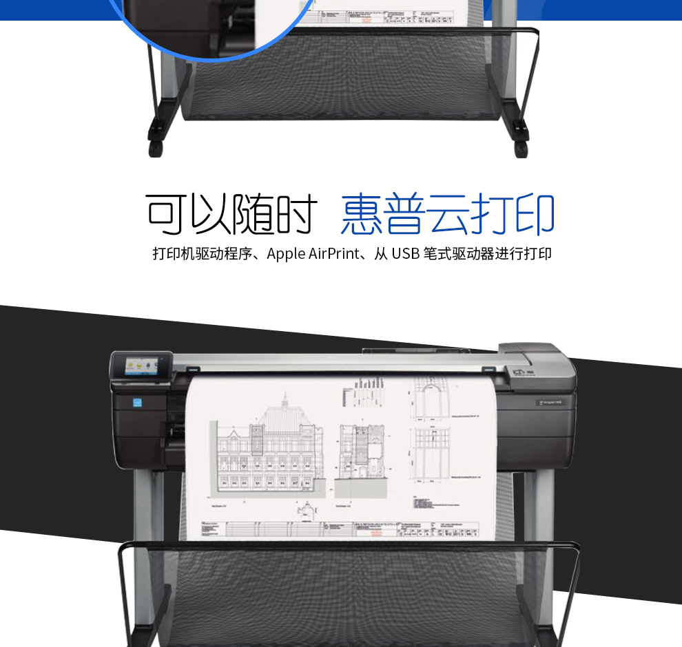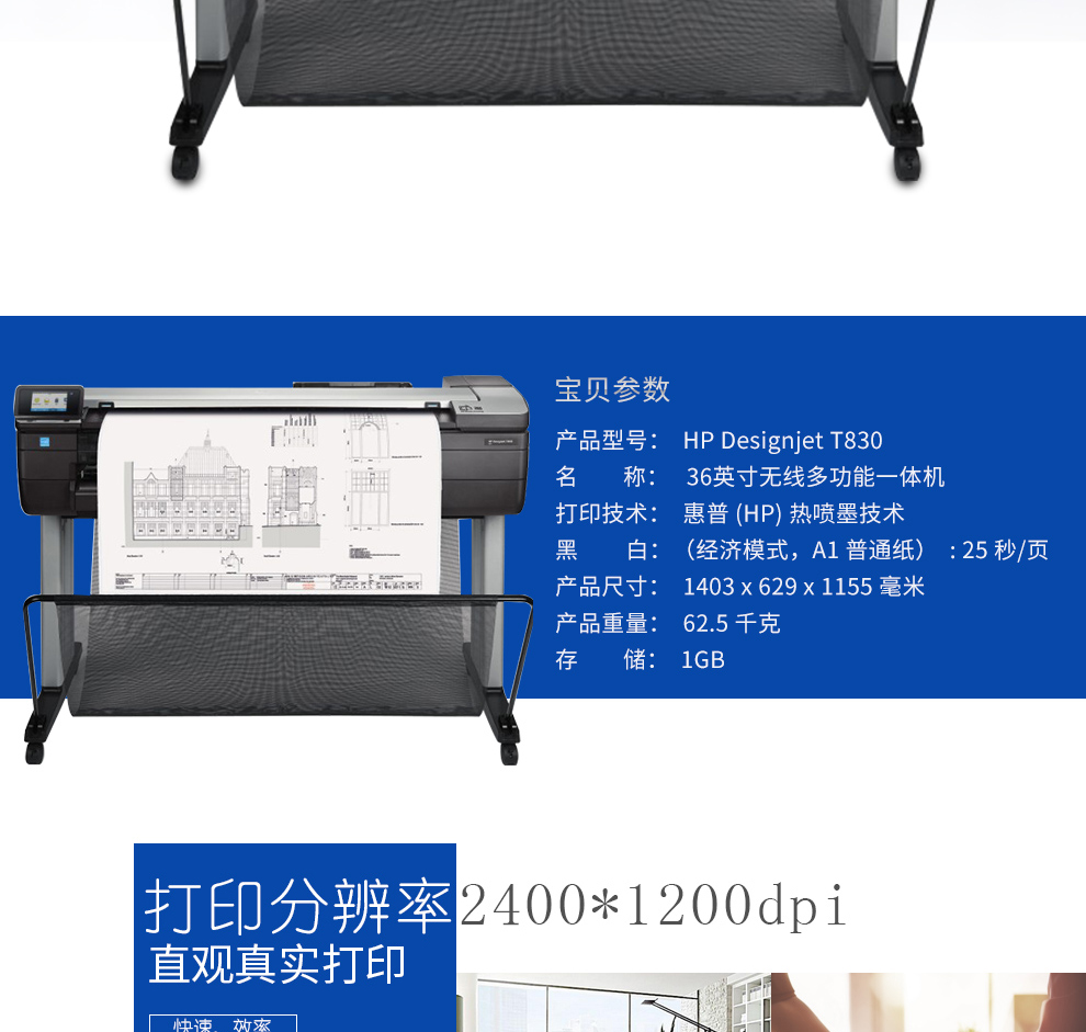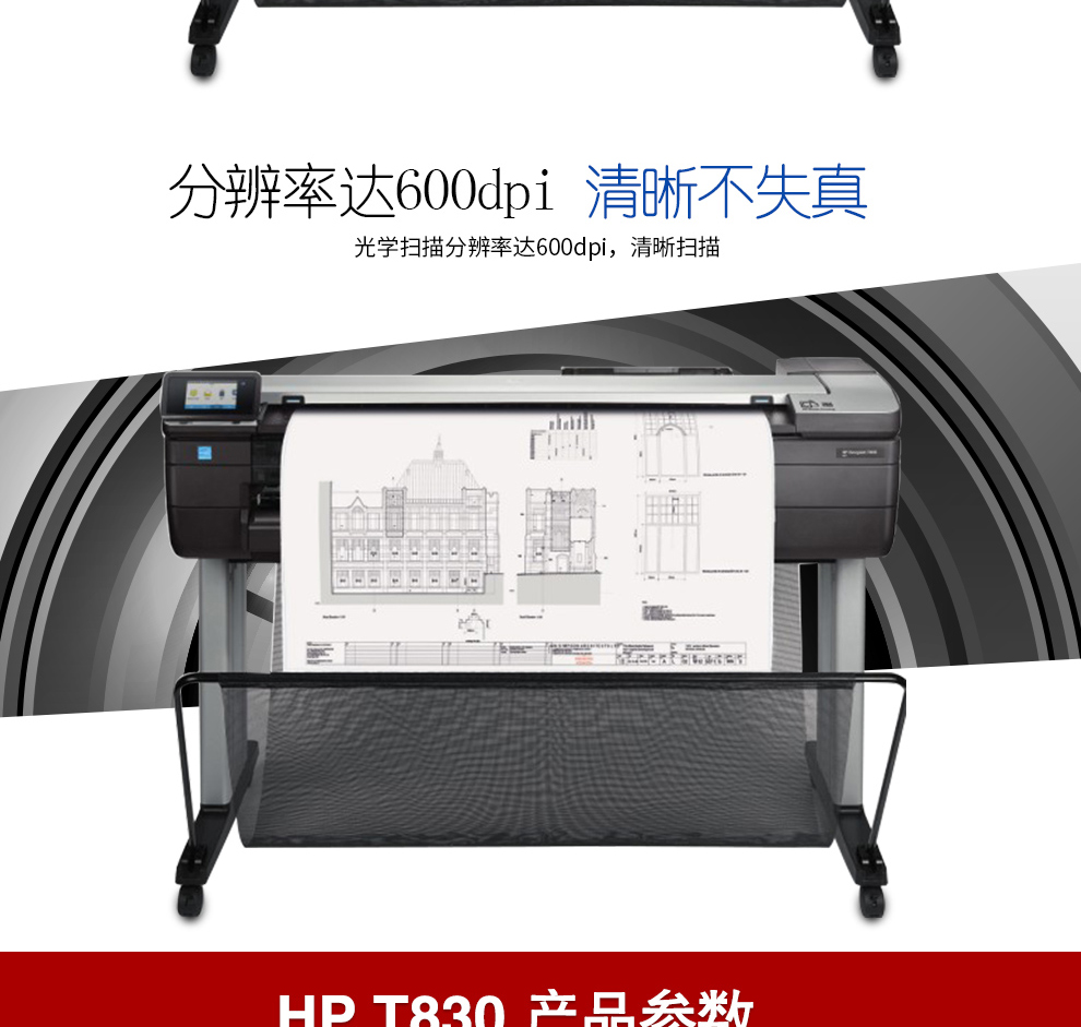 惠普(HP) 繪圖儀 A1A0t650\/730\/830大幅面寫真噴繪機(jī)打印機(jī)工程CAD及線條藍(lán)圖 T1600PS A0+36英寸6色雙紙軸