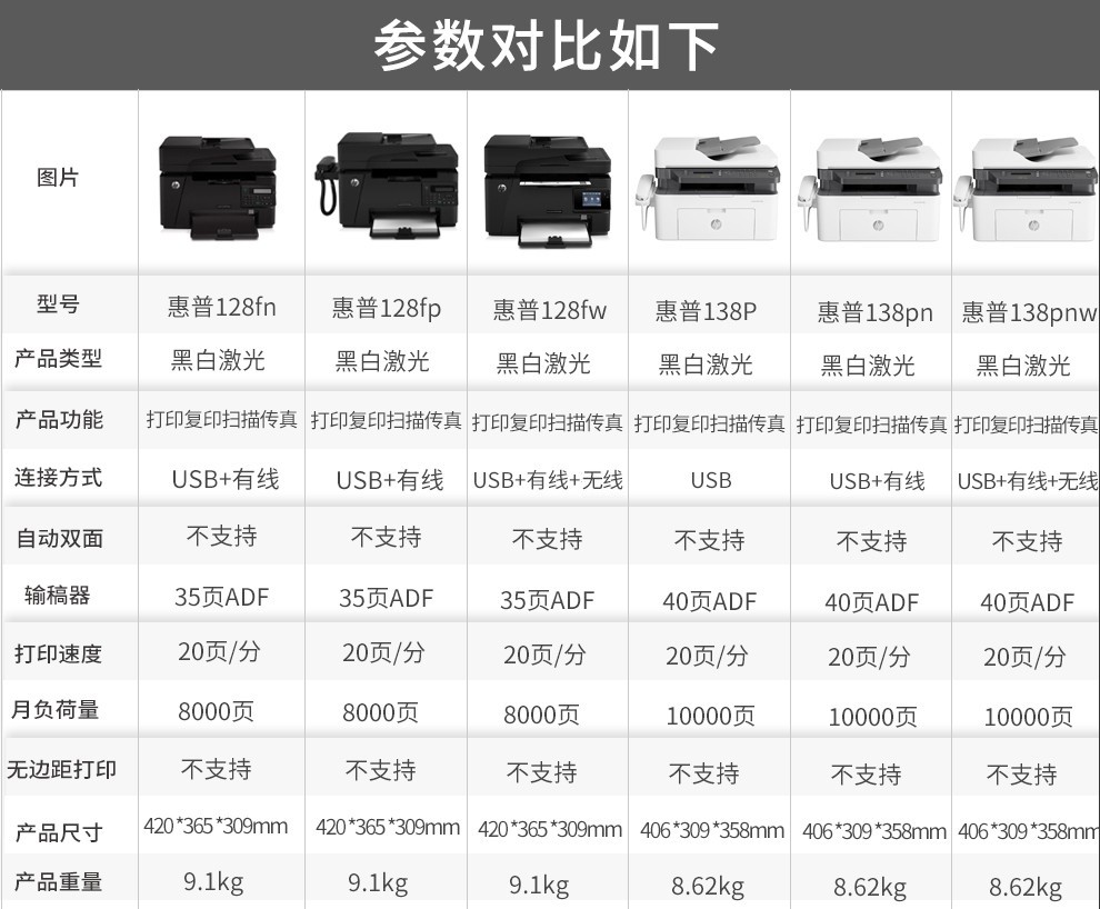 惠普/HP 138pnw A4 黑白打印機(jī) A4黑白激光多功能一體機(jī) 打印 復(fù)印 掃描 傳真 無(wú)線連接