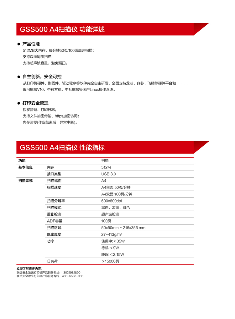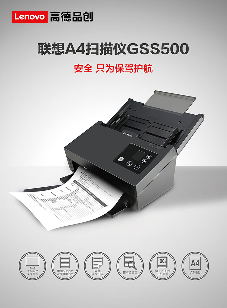 聯(lián)想(Lenovo)GSS500 A4幅面掃描儀 支持雙面同步掃描 支持國(guó)產(chǎn)系統(tǒng)及Windows系統(tǒng)(國(guó)產(chǎn)化)