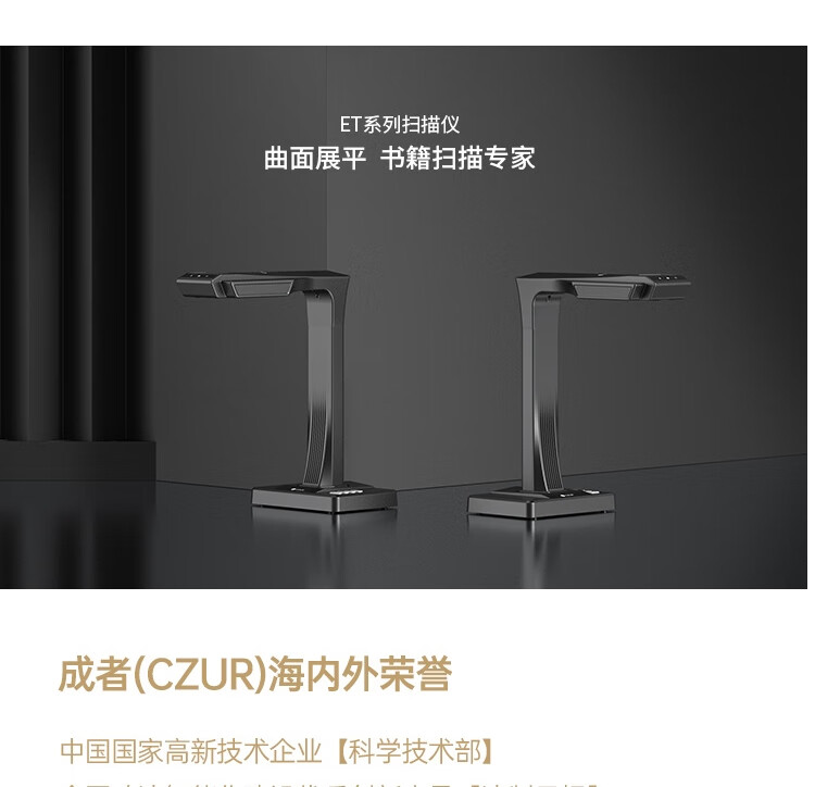 成者(CZUR)ET25書籍掃描儀高拍儀辦公文件資料合同票據(jù)成冊書刊試卷自動(dòng)檢測掃描