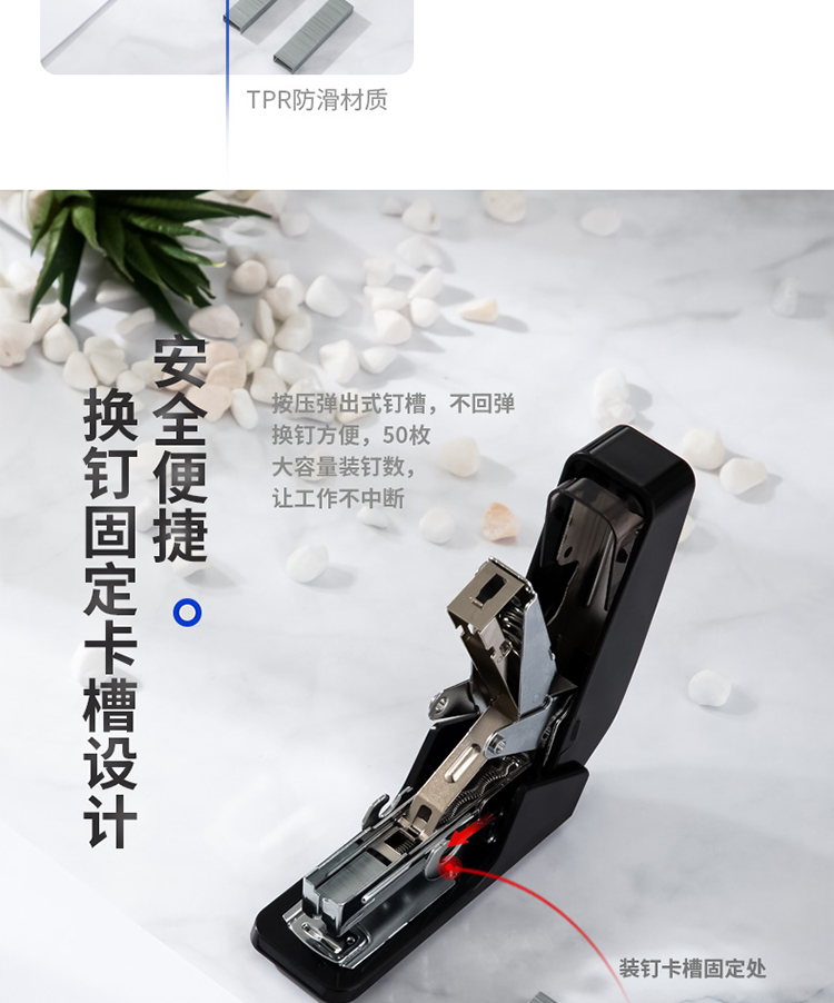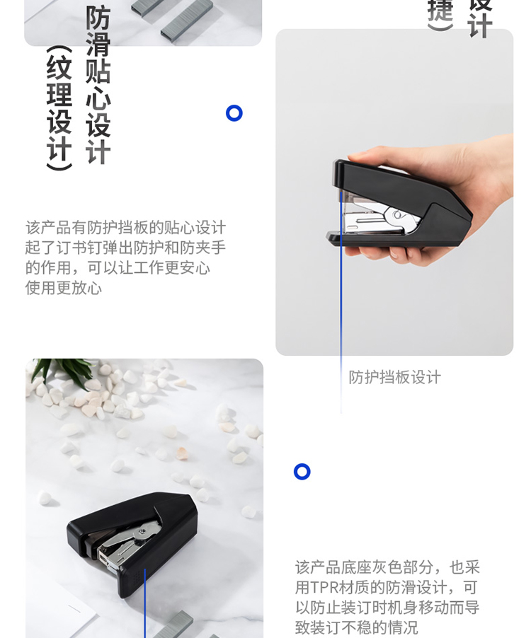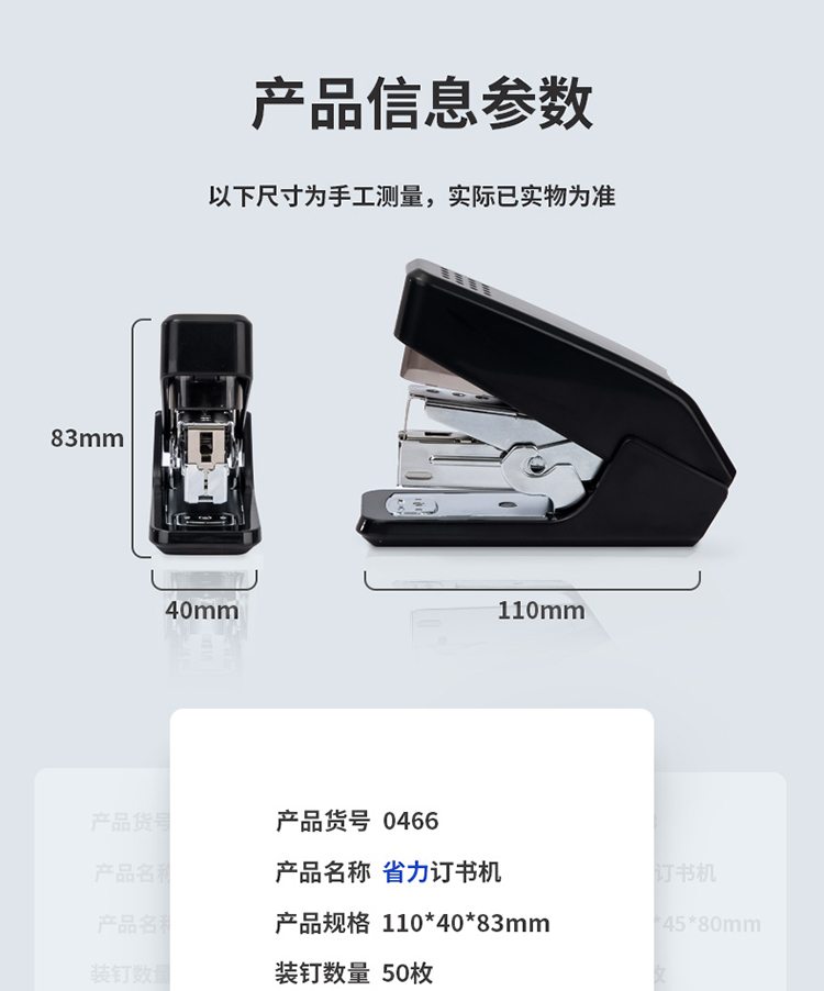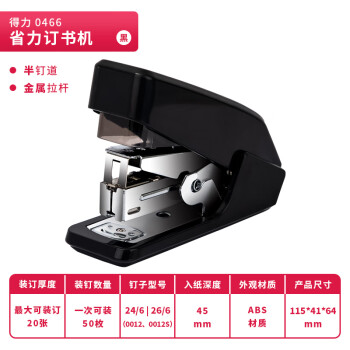 得力/deli 0466 裝訂及打孔類 單指按壓省力訂書機(jī)/訂書器 適配12#訂書釘 可裝50枚釘 黑色(不含釘)