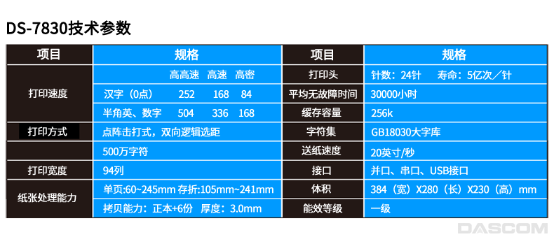 得實(shí)/DASCOM DS-7830 票據(jù)打印機(jī) 4針94列 厚簿證/存折打印機(jī)/產(chǎn)權(quán)證房產(chǎn)證