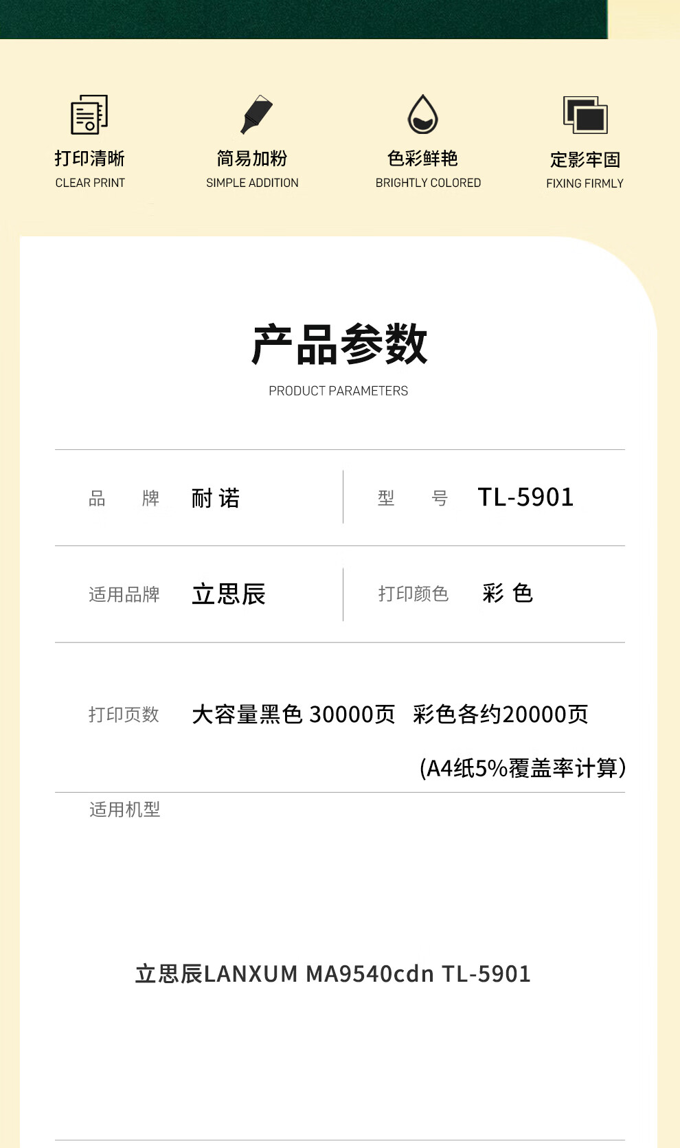 立思辰/LANXUM TL-5901Y 粉盒 MA9540cdn粉盒LANXUM MA9540cdn【20000頁】TL-5901Y粉盒/黃色