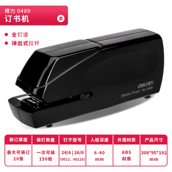 得力(deli)雙電源電動(dòng)訂書(shū)機(jī) 電子自動(dòng)裝訂訂書(shū)器 適配24/6或26/6訂書(shū)釘 辦公用品 黑色0489