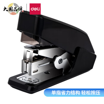 得力(deli)單指按壓省力訂書(shū)機(jī)/訂書(shū)器 適配12#訂書(shū)釘 可裝50枚釘 黑色0466(不含釘)