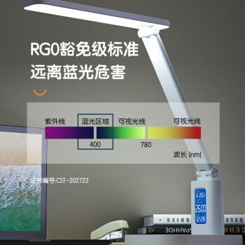 得力(deli)LED折疊臺(tái)燈 時(shí)間溫度日期同屏顯示帶鬧鐘 RG0級(jí)減藍(lán)光 床頭宿舍書桌工作臺(tái)燈 17859