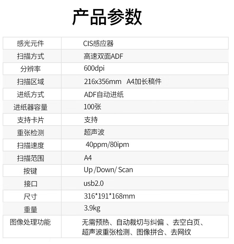 紫光/UNIS Q400 掃描儀 高速雙面彩色連續(xù)自動進紙饋紙掃描儀 (40頁80面/分鐘)CIS感光元
