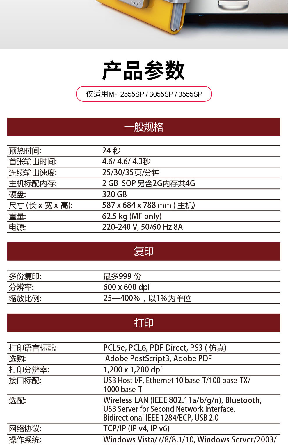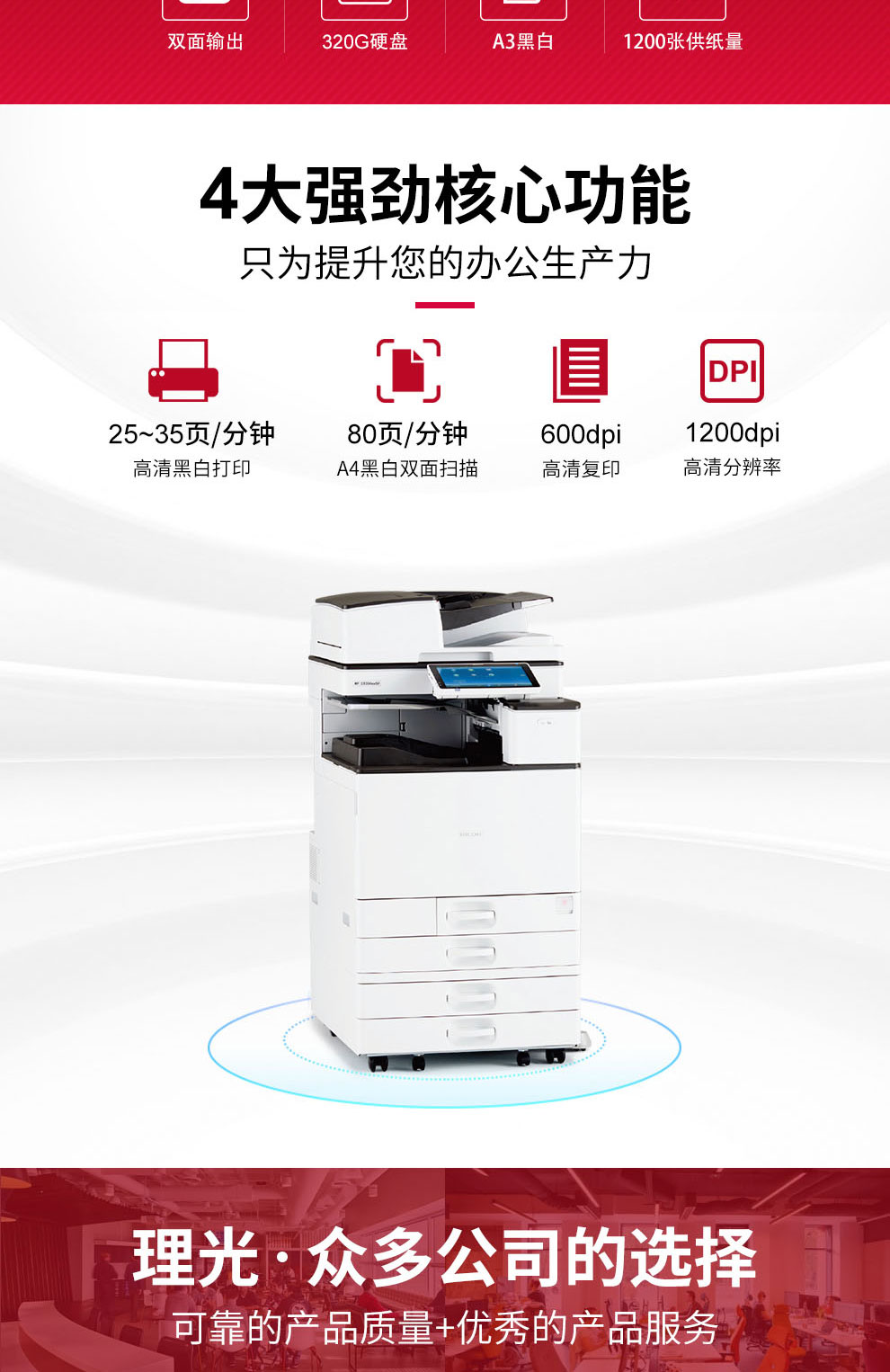 理光/RICOH MP 3055SP A3 黑白打印機 黑白A3打印機 復印機 復合機 網(wǎng)絡彩色掃描 (30頁/分鐘) 雙紙盒+雙面輸稿器