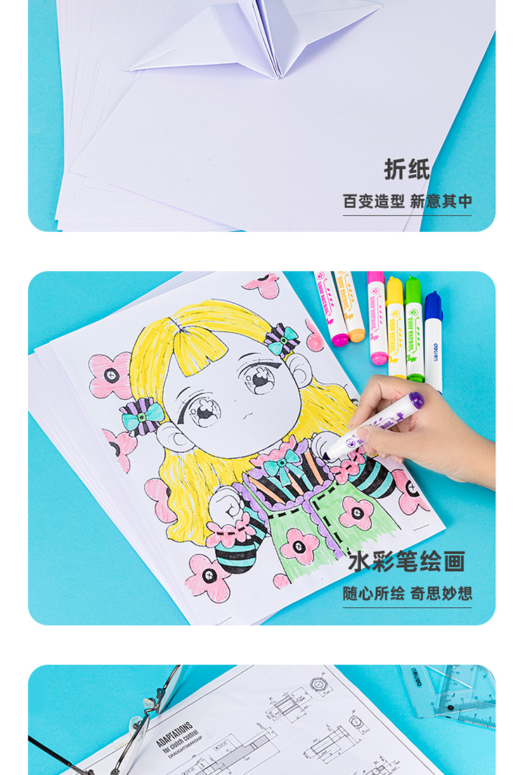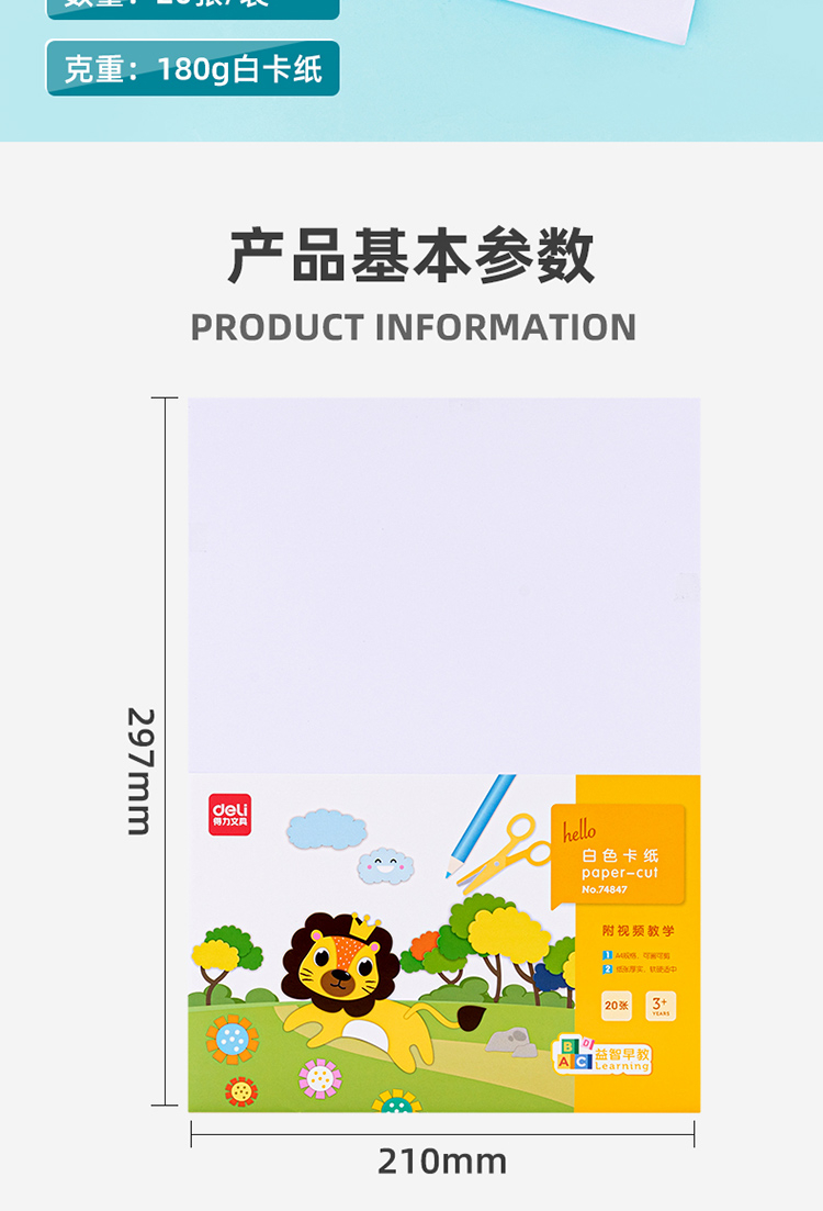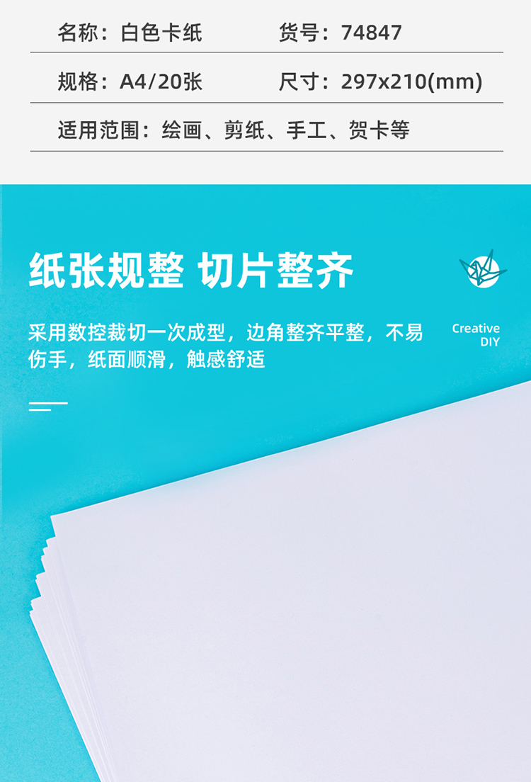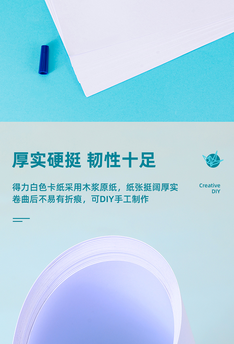 得力 (deli) 74847 噴墨/相片紙/卡紙 A4白色卡紙 硬厚卡紙 兒童手工折紙彩紙 美術(shù)課堂DIY手工紙 20張