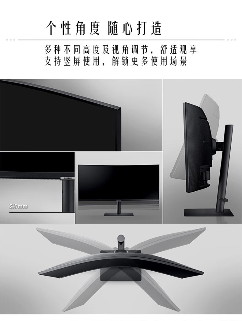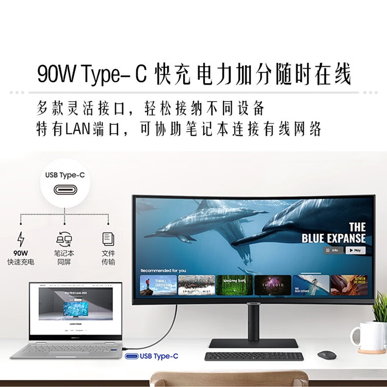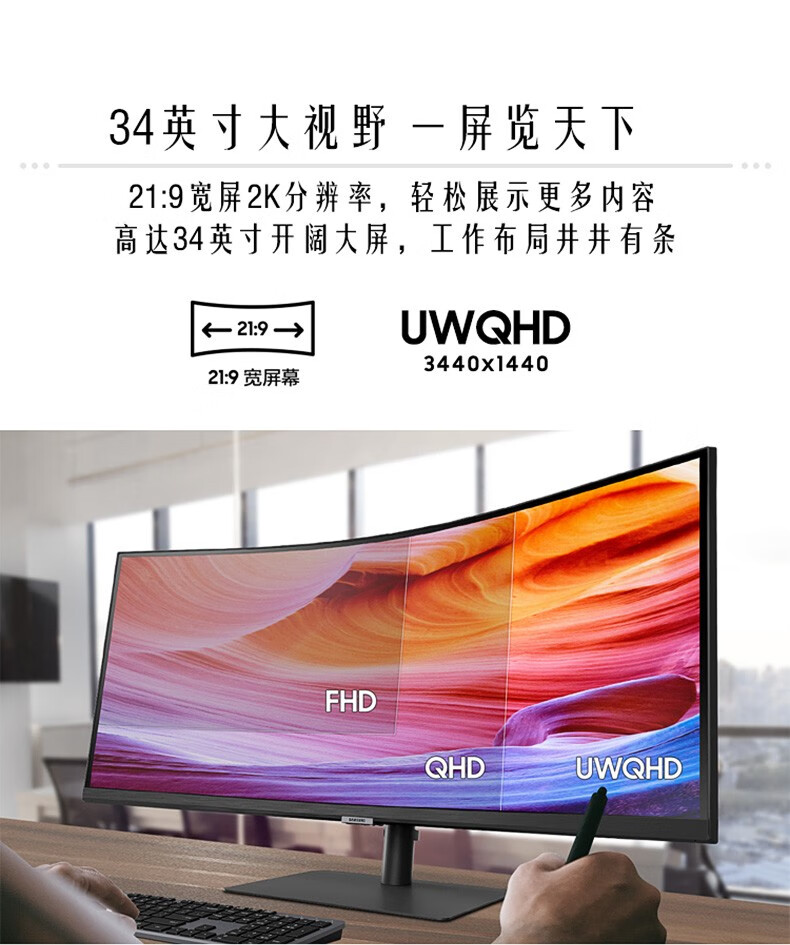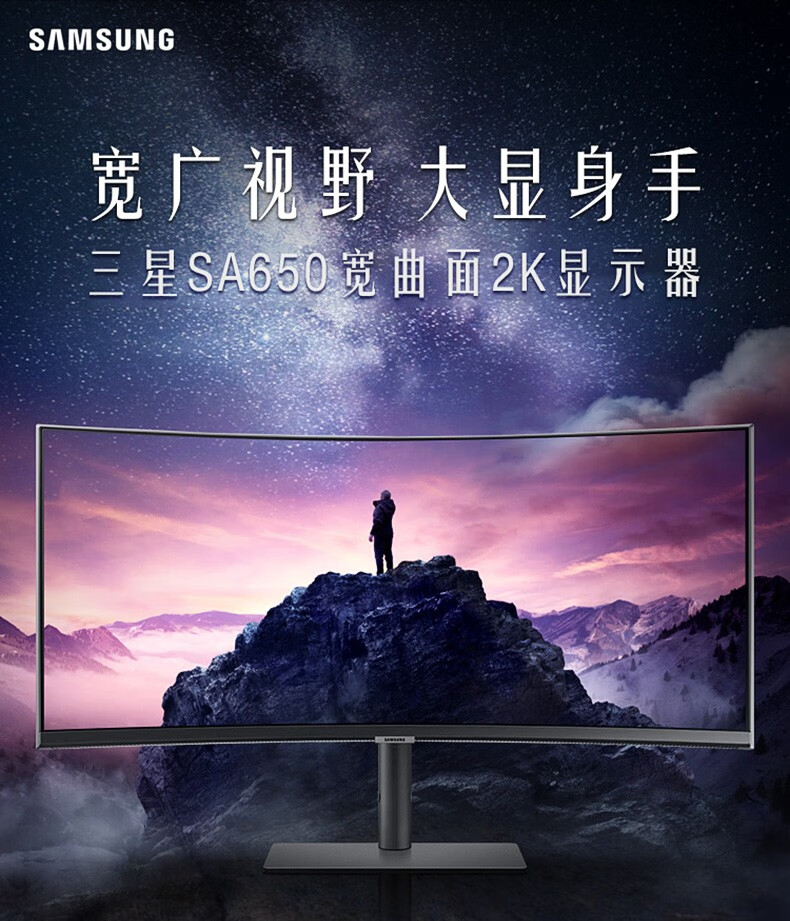 三星(SAMSUNG)S34A650UBC 液晶顯示器 34英寸準(zhǔn)4K/100Hz 電競游戲電腦顯示曲面屏帶魚屏 可壁掛 10億色