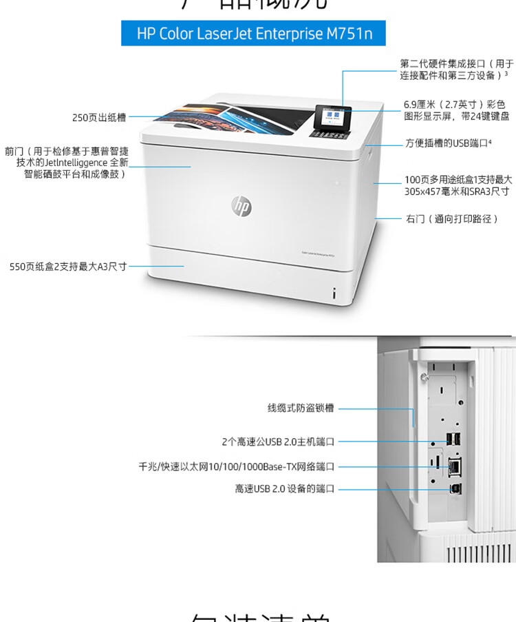 惠普/HP M751N A3 彩色打印機(jī) A3企業(yè)級(jí)彩色激光高速打印機(jī) 有線網(wǎng)絡(luò) 高速打印