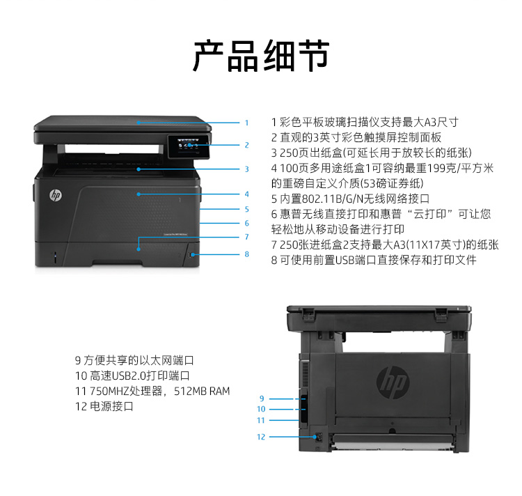 惠普/HP M435nw A3 黑白打印機(jī) 黑白激光A3數(shù)碼復(fù)合機(jī)工作組 多功能 打印 復(fù)印 掃描 無線連接