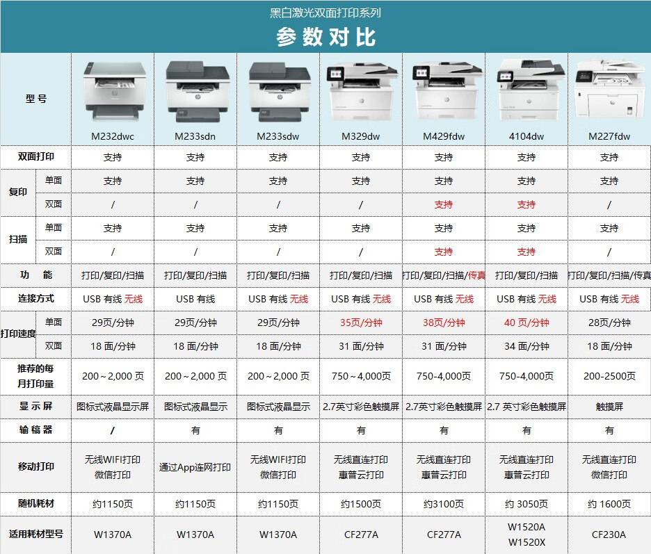 惠普/HP M233sdn A4 黑白打印機(jī) 雙面激光打印機(jī)辦公家用一體機(jī)黑白多功能A4打印復(fù)印掃描