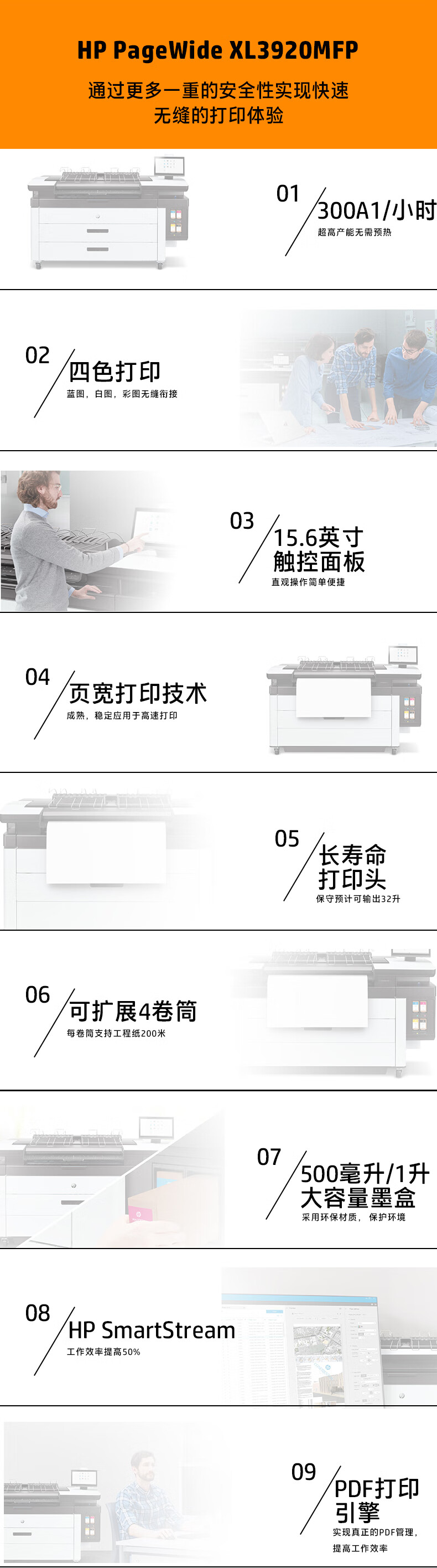 惠普(hp) PageWide XL3920 MFP 專業(yè)高速彩色寬幅打印大幅面打印機繪圖儀一體機 40英寸3920 MFP 一體機