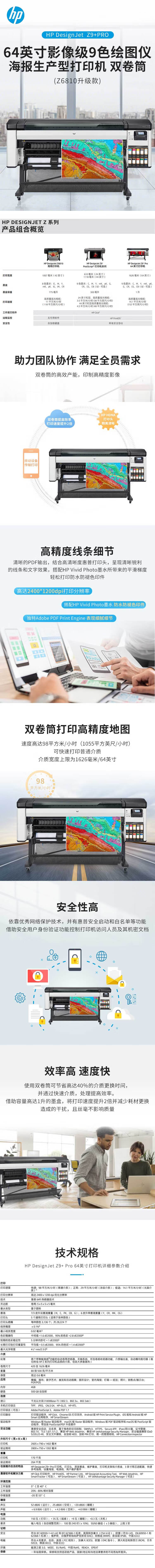 惠普/HP Z9+Pro A3 彩色打印機 作訓地圖噴繪機宣傳海報專用繪圖儀 64英寸 單卷筒