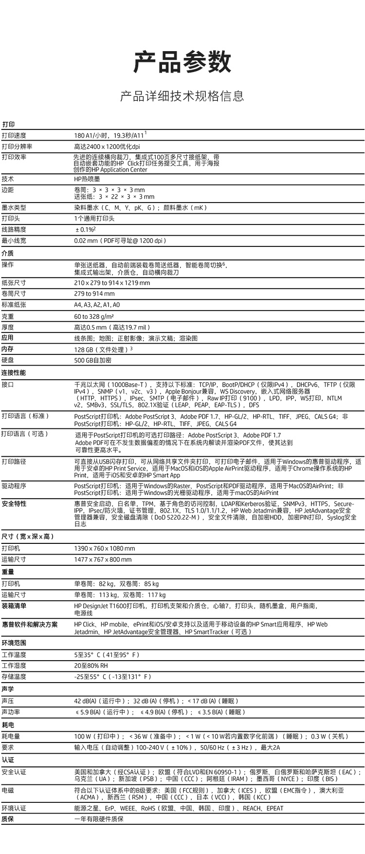 惠普/HP T1600 A3 彩色打印機(jī) T1600(3EK10A) 36英寸A0大幅面打印機(jī)/繪圖儀