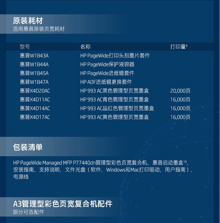 惠普 HP PageWide Managed Color MFP P77440dn管理型彩色頁(yè)寬復(fù)合 標(biāo)配