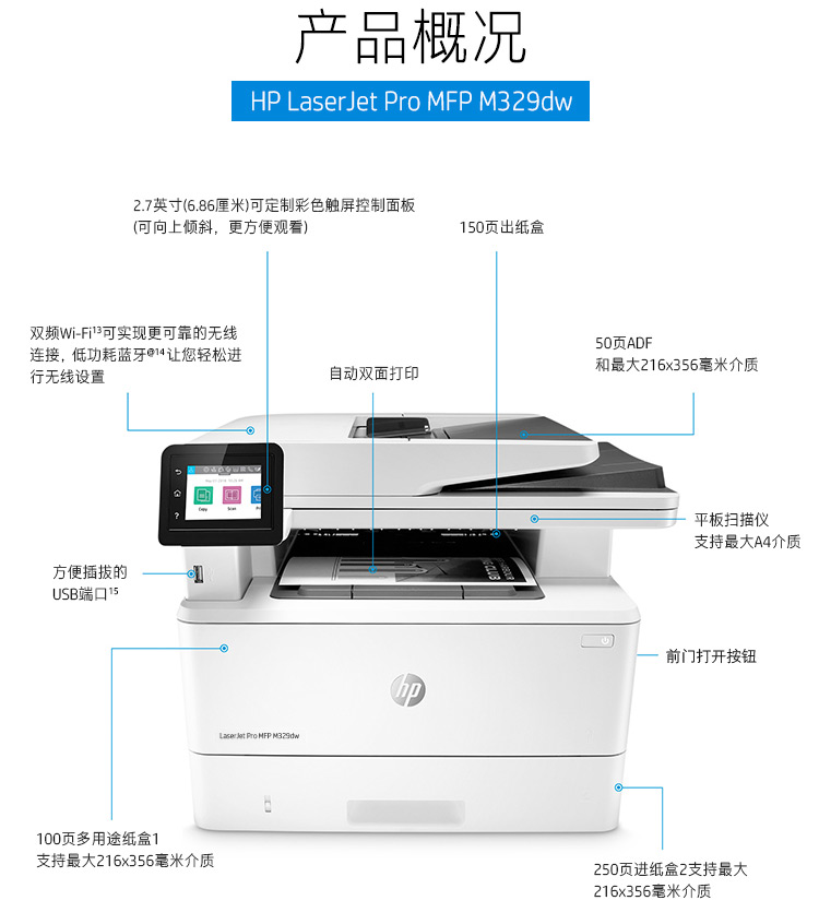 惠普(HP)M329dw激光多功能一體機(jī) 商務(wù)辦公三合一 無線連接打印復(fù)印掃描 自動(dòng)雙面打印 M427系列升級(jí)款
