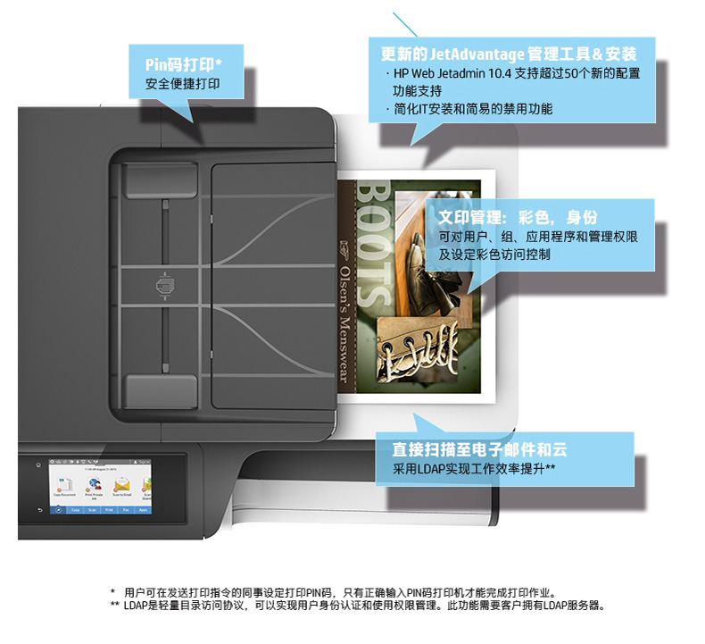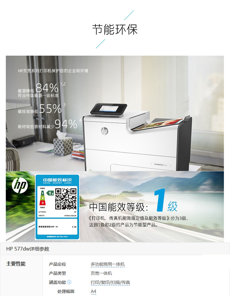 惠普(HP) Pro 577dw彩色噴墨打印機 頁寬秒速級一體機(無線 打印 傳真 掃描 復?。?標準版577DW