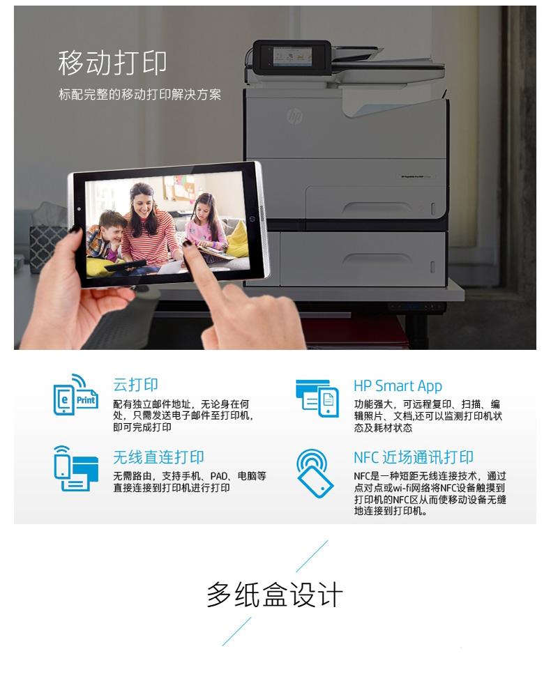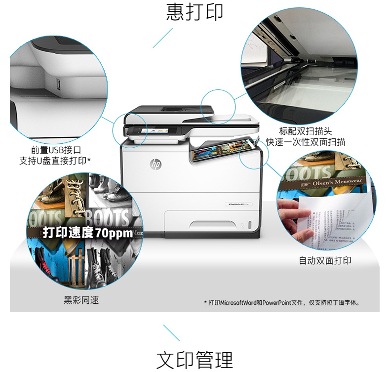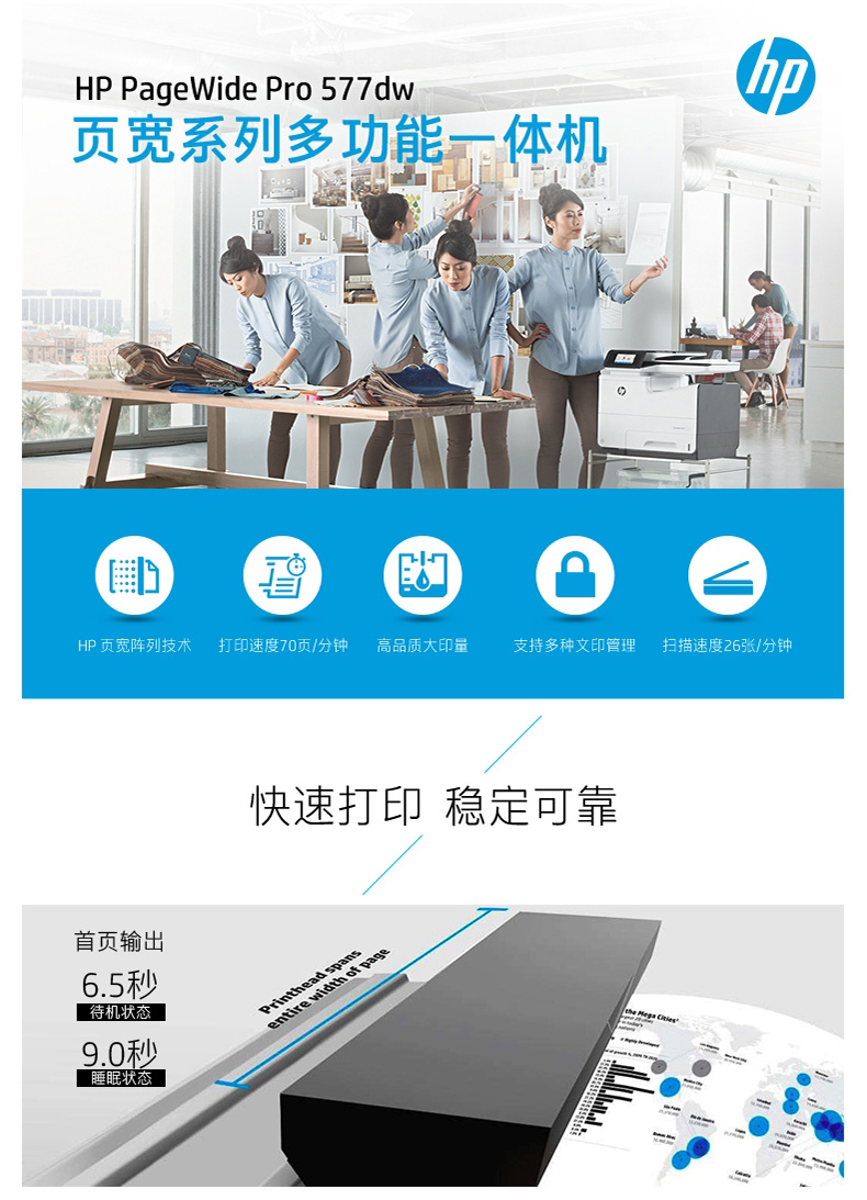 惠普/HP Pro 577dw A4 彩色打印機 彩色噴墨打印機 頁寬秒速級一體機(無線 打印 傳真 掃描 復?。?標準版