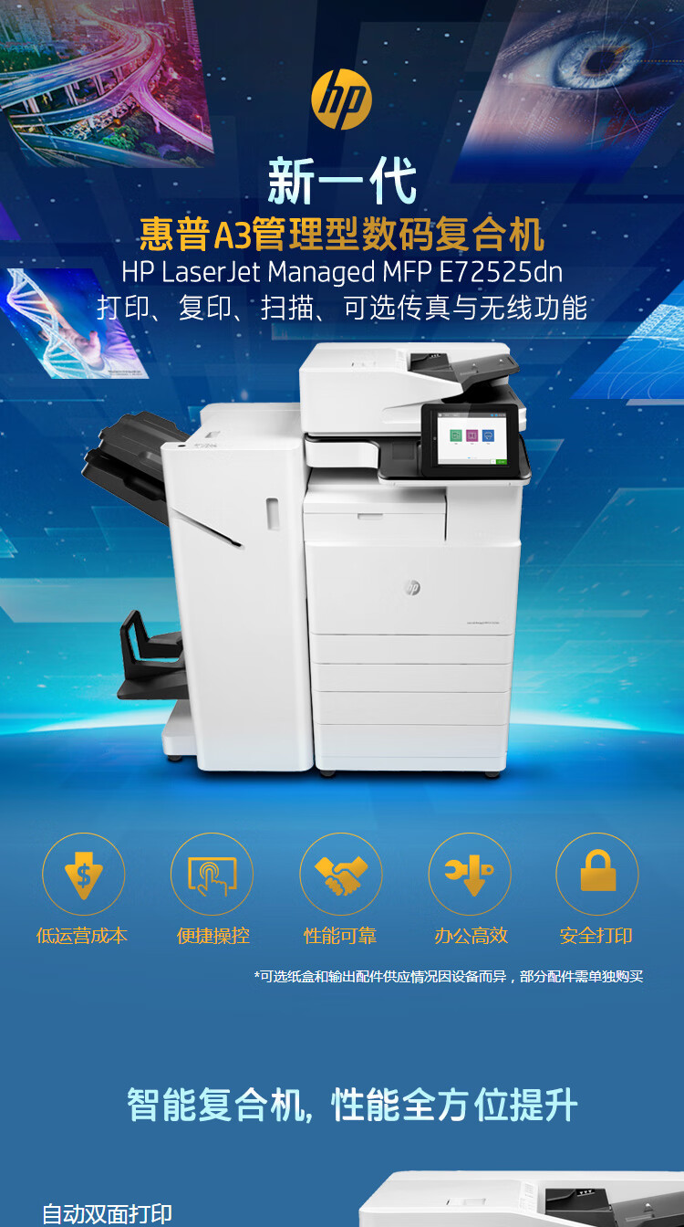 惠普/HP E72525dn A3 黑白打印機(jī) A3黑白激光中速數(shù)碼復(fù)合機(jī) 打印 復(fù)印 掃描 100頁ADF 企業(yè)級(jí) E72525dn 自動(dòng)雙面