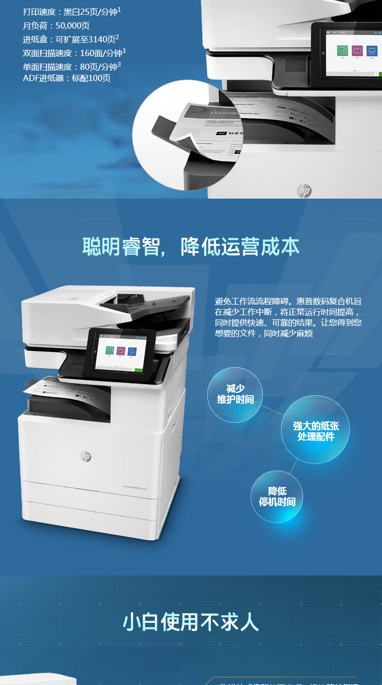 惠普(HP)A3黑白激光中速數(shù)碼復(fù)合機(jī) 打印 復(fù)印 掃描 100頁ADF 企業(yè)級(jí) E72525dn 自動(dòng)雙面
