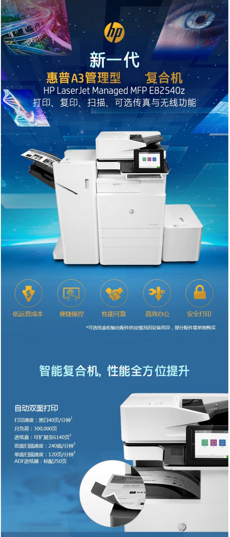 惠普(HP)MFP E82540z 管理型數(shù)碼復(fù)合機(jī)(打印、復(fù)印、掃描;傳真可選) E82540z 官方標(biāo)配