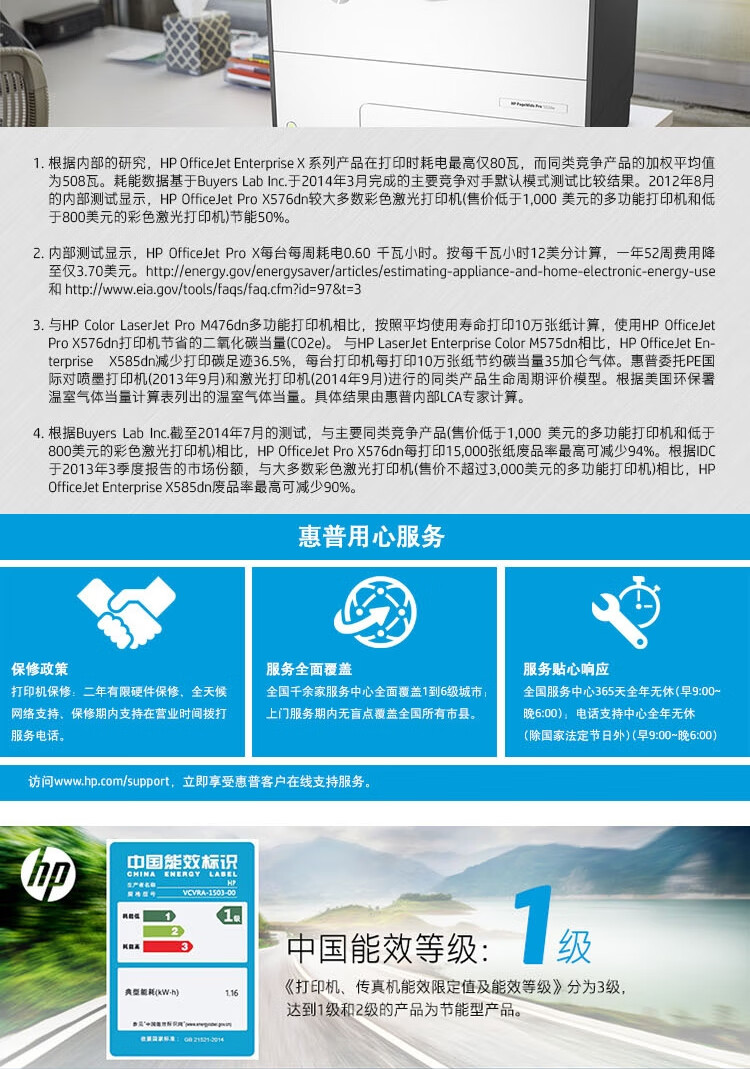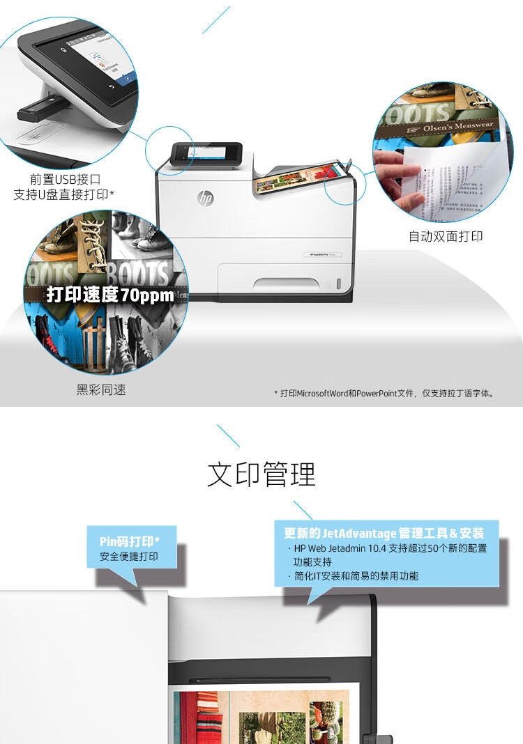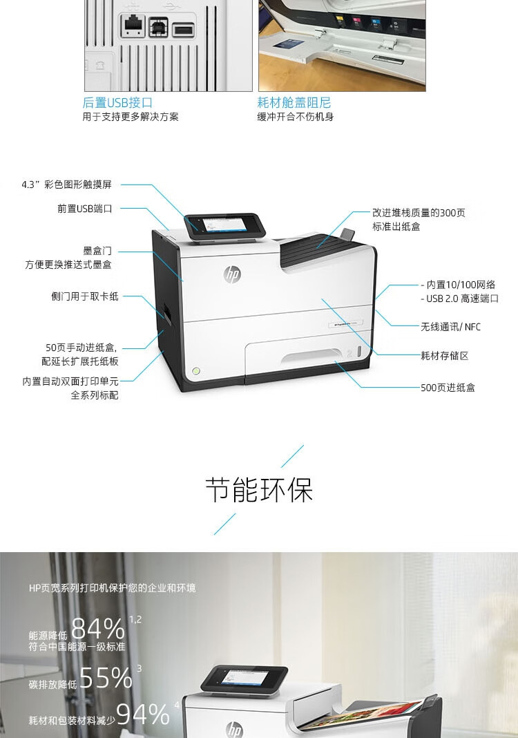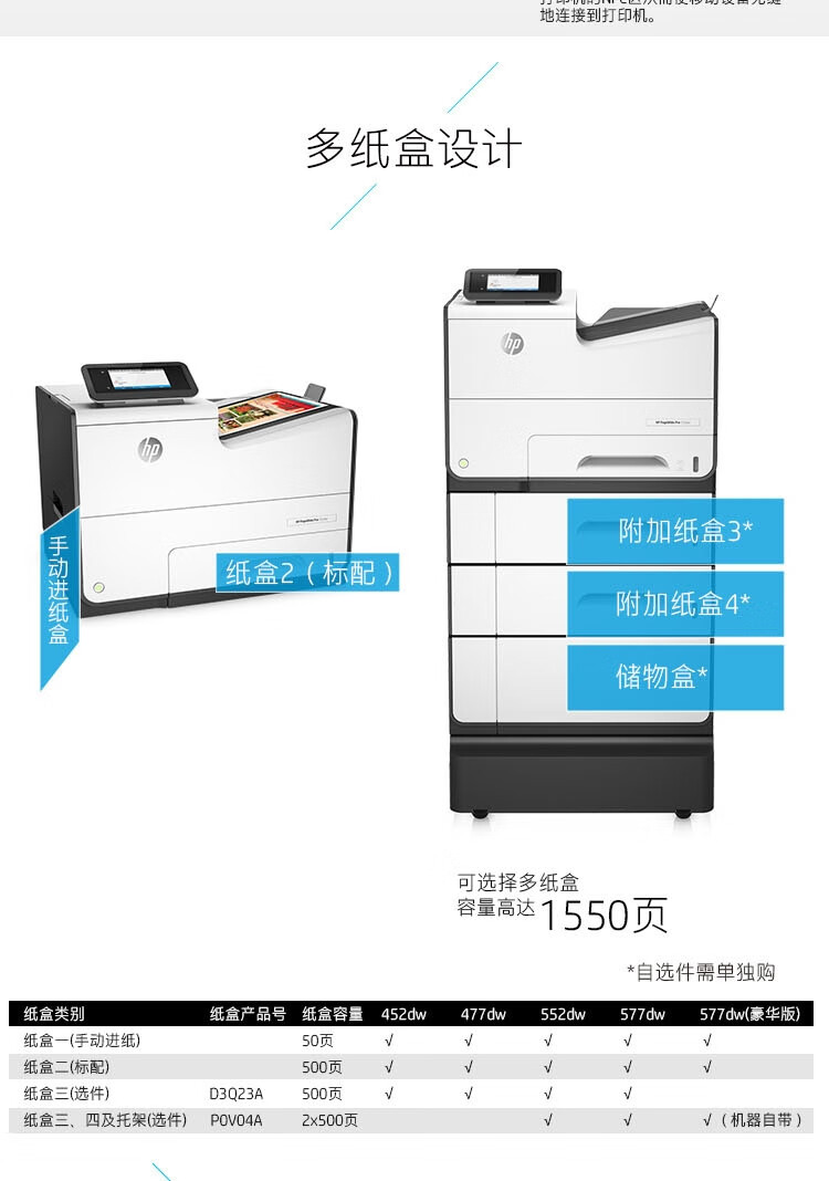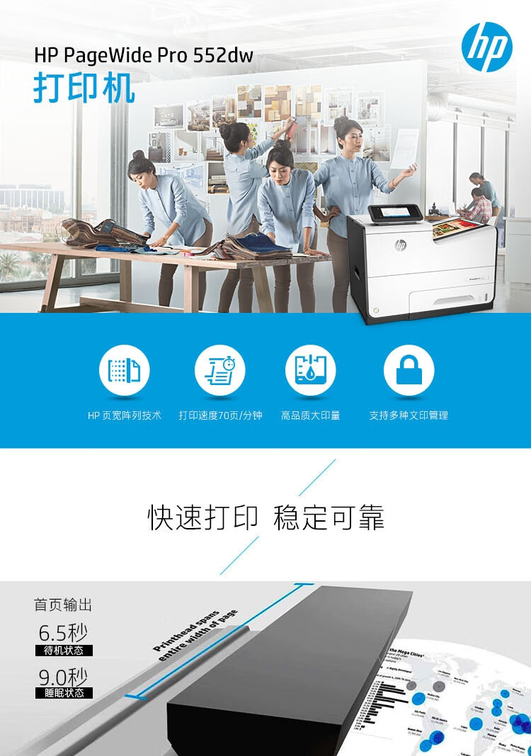 惠普(HP)PageWide Pro 552dw A4頁寬高速彩色打印機
