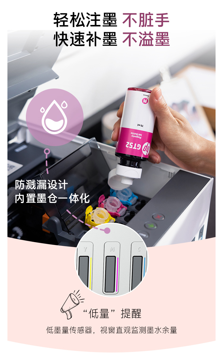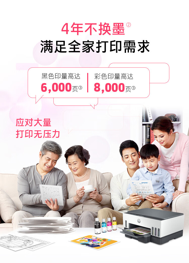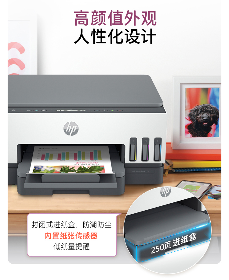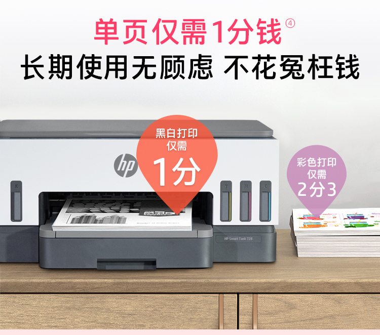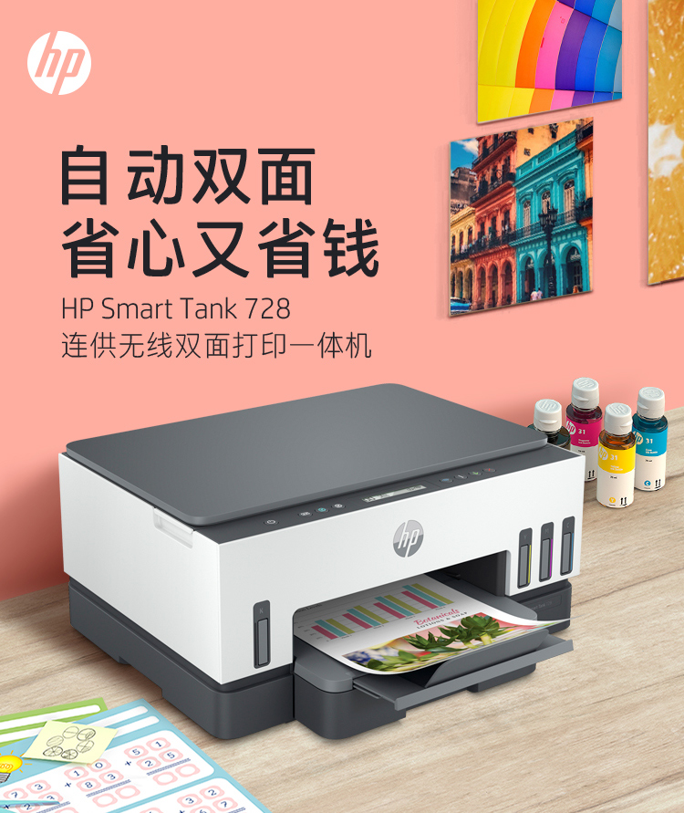 惠普(HP)728 連供無線打印一體機 自動雙面三合一彩色打印機家用 打印復(fù)印掃描商用辦公單頁成本1分錢