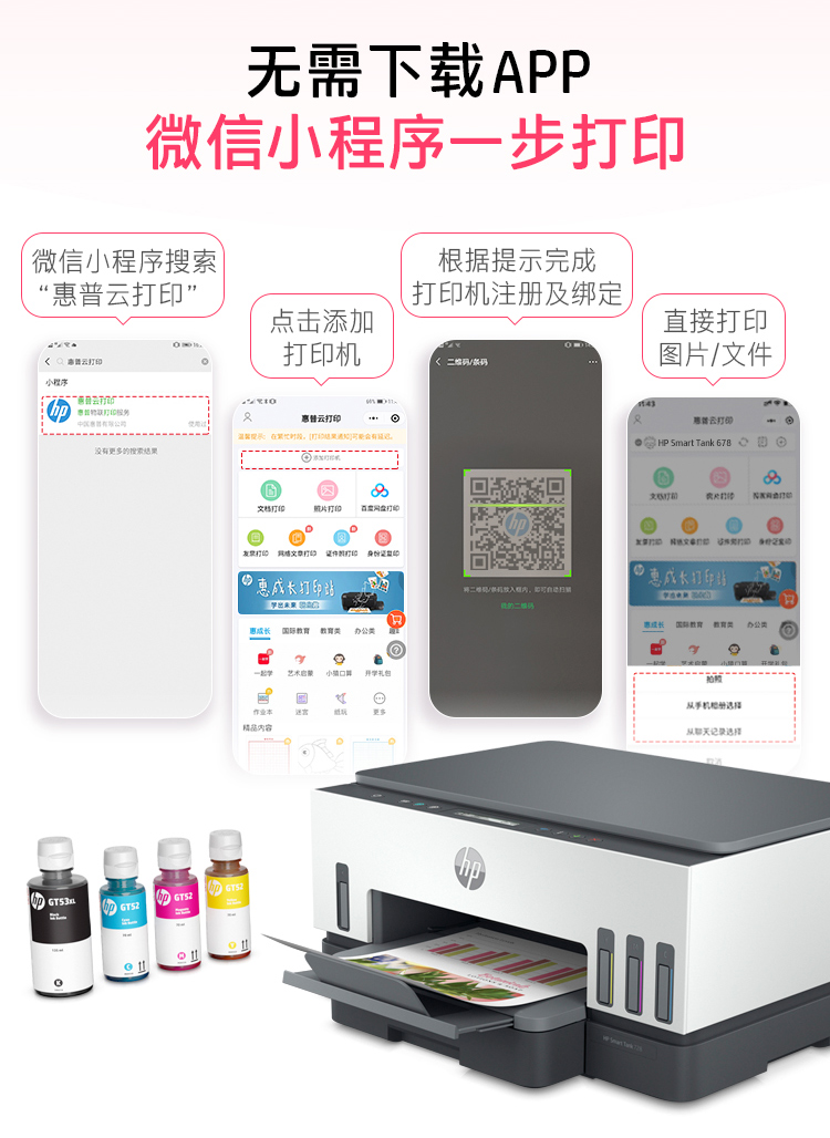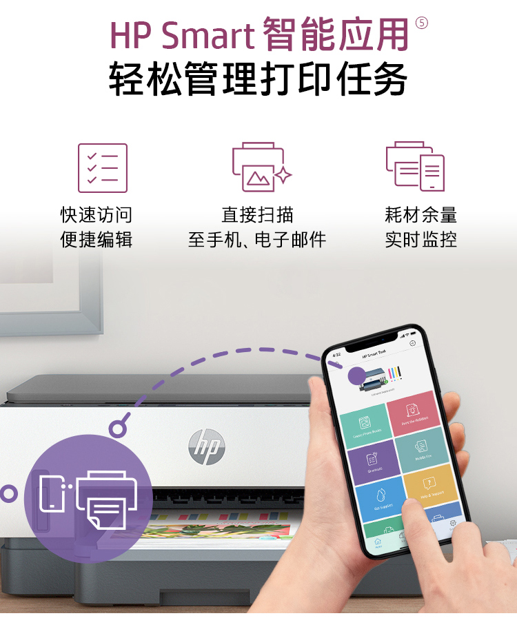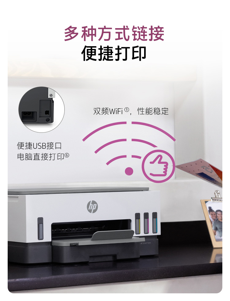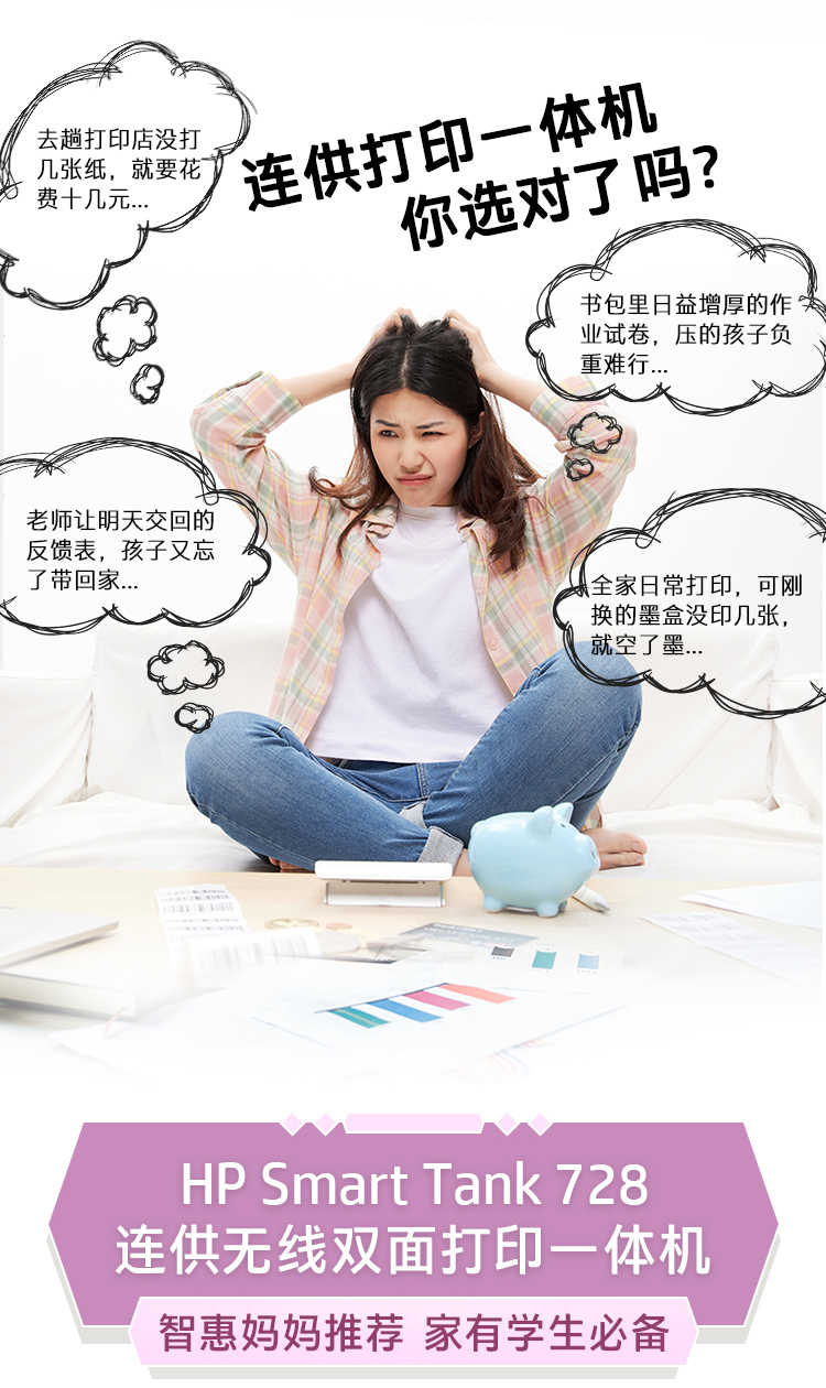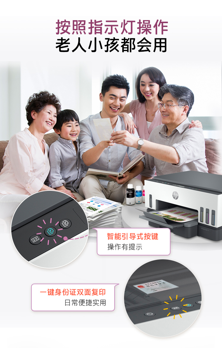 惠普(HP)728 連供無線打印一體機 自動雙面三合一彩色打印機家用 打印復(fù)印掃描商用辦公單頁成本1分錢