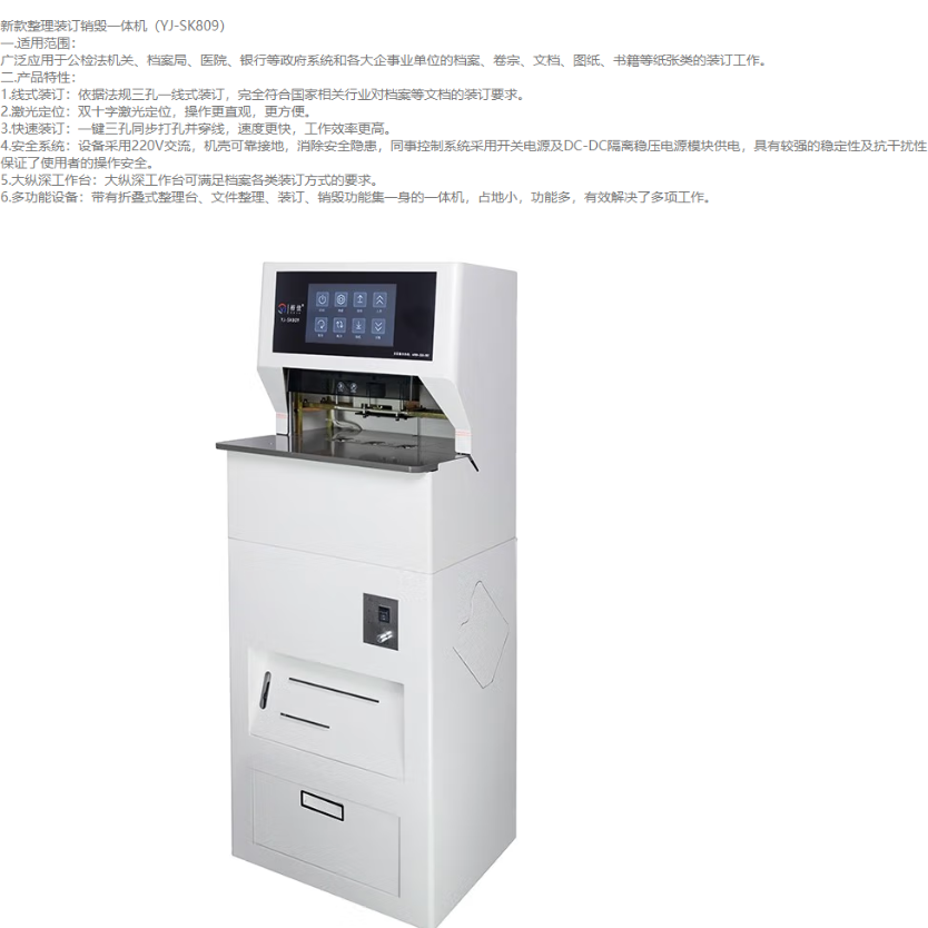 裕佳/YJ SK809 裝訂及打孔類 裝訂機 整理裝訂銷毀一體機 主機+底柜