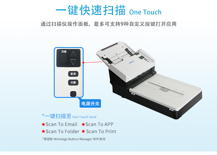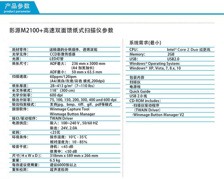 影源/WinMage M2100+ 掃描儀 彩色A4幅面ADF+平板式雙平臺掃描儀 饋紙速度60ppm/120ipm 掃描元器件CCD,ADF加平板一體機(jī)
