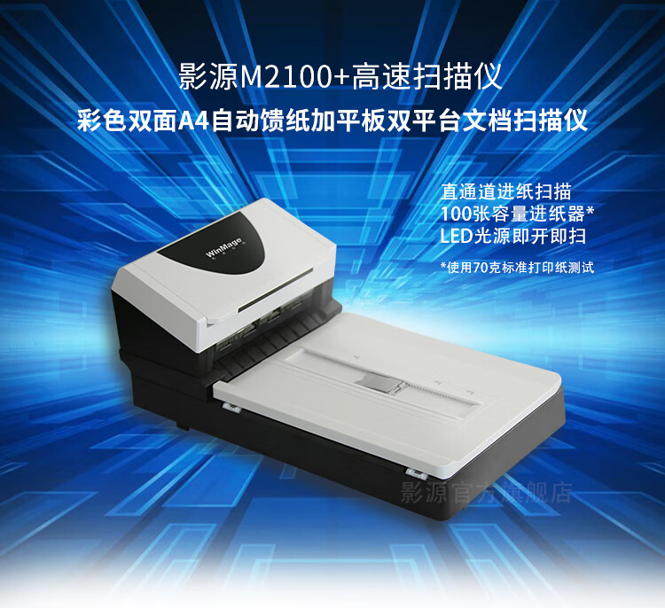 影源掃描儀M2100+彩色A4幅面ADF+平板式雙平臺掃描儀 饋紙速度60ppm/120ipm 掃描元器件CCD,ADF加平板一體機(jī)