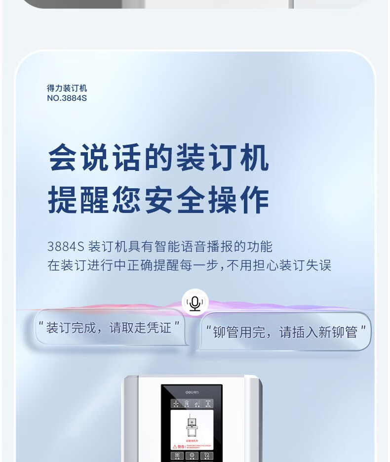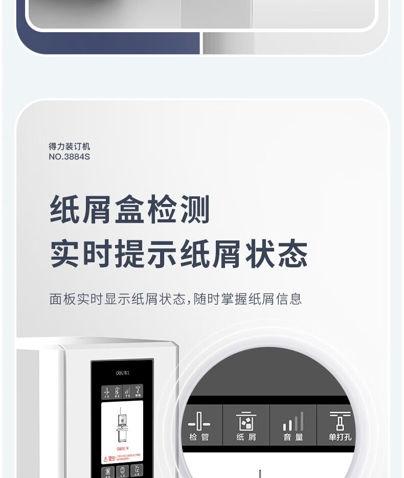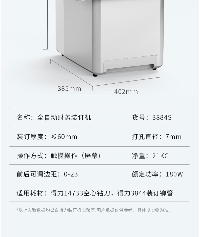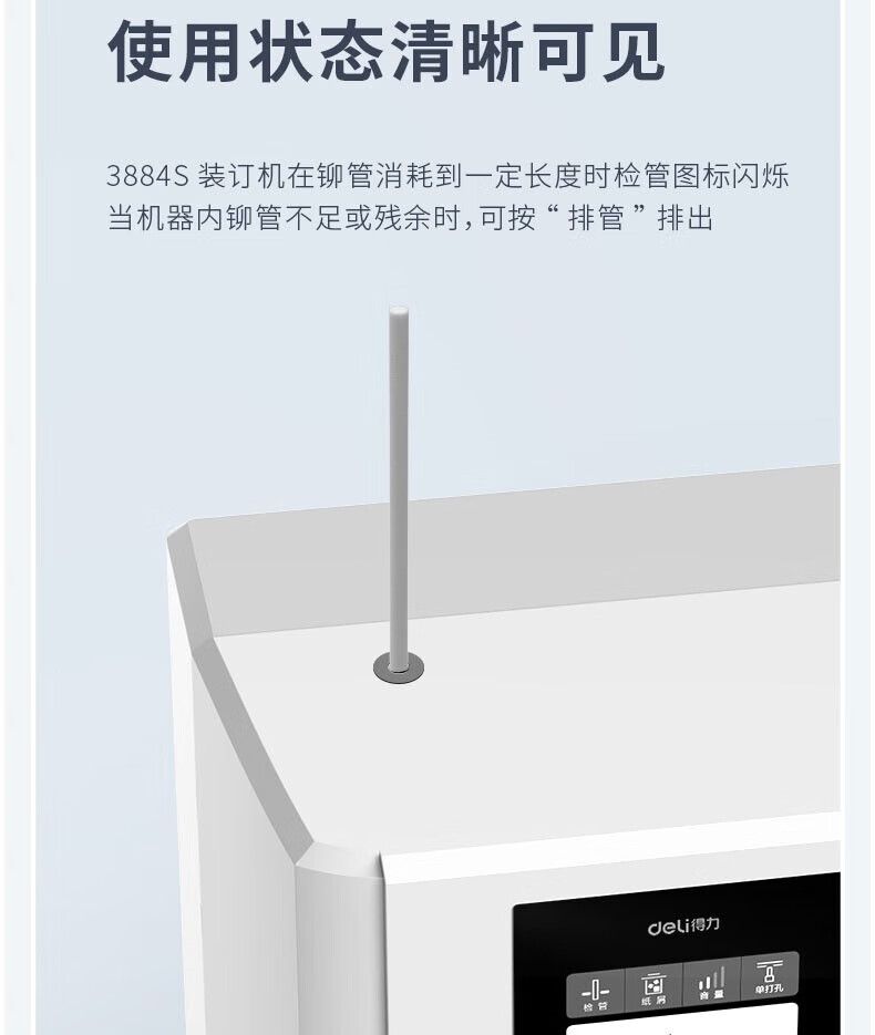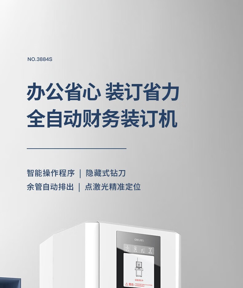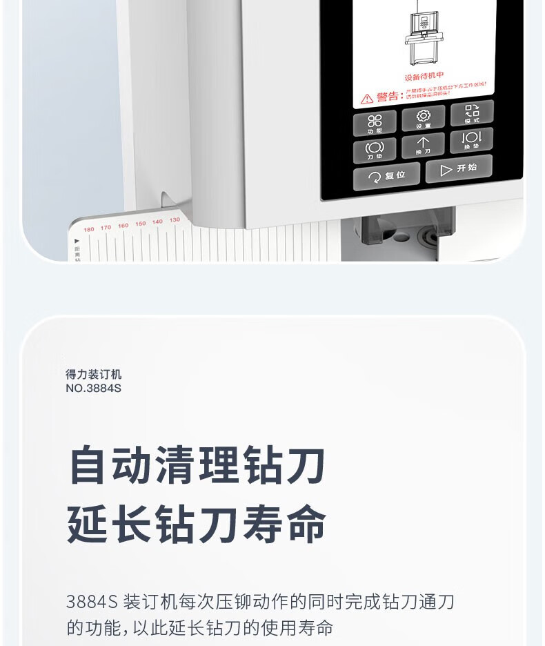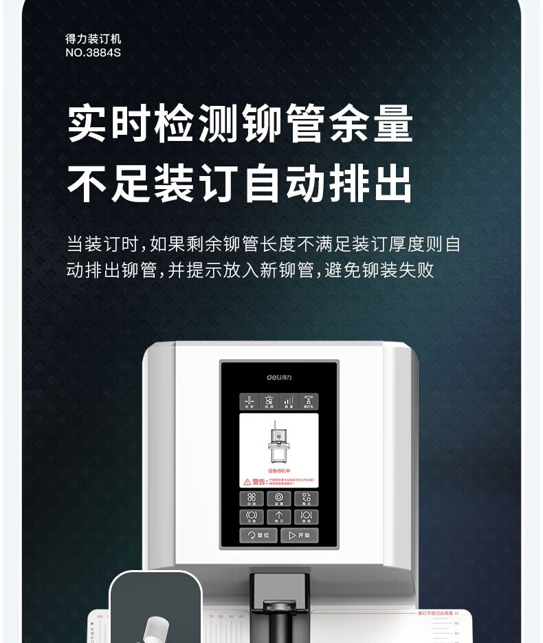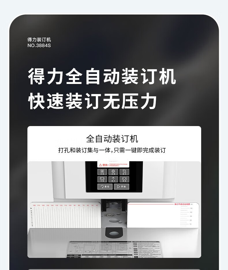得力/deli 3884S 裝訂及打孔類 60mm全自動(dòng)財(cái)務(wù)憑證裝訂機(jī) 會(huì)計(jì)文件熱熔鉚膠管打孔機(jī) 觸控屏幕一鍵操作 600頁 全自動(dòng)裝訂
