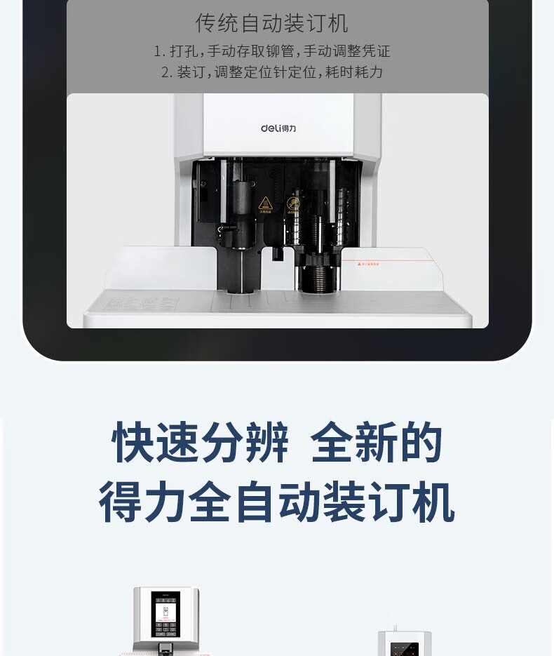 得力(deli)60mm全自動(dòng)財(cái)務(wù)憑證裝訂機(jī) 會(huì)計(jì)文件熱熔鉚膠管打孔機(jī) 觸控屏幕一鍵操作 600頁 全自動(dòng)裝訂 3884S