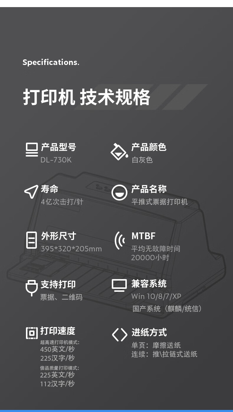 得力/deli DL-730K 票據(jù)打印機 發(fā)票針式打印機 快遞單打印(82列平推式)