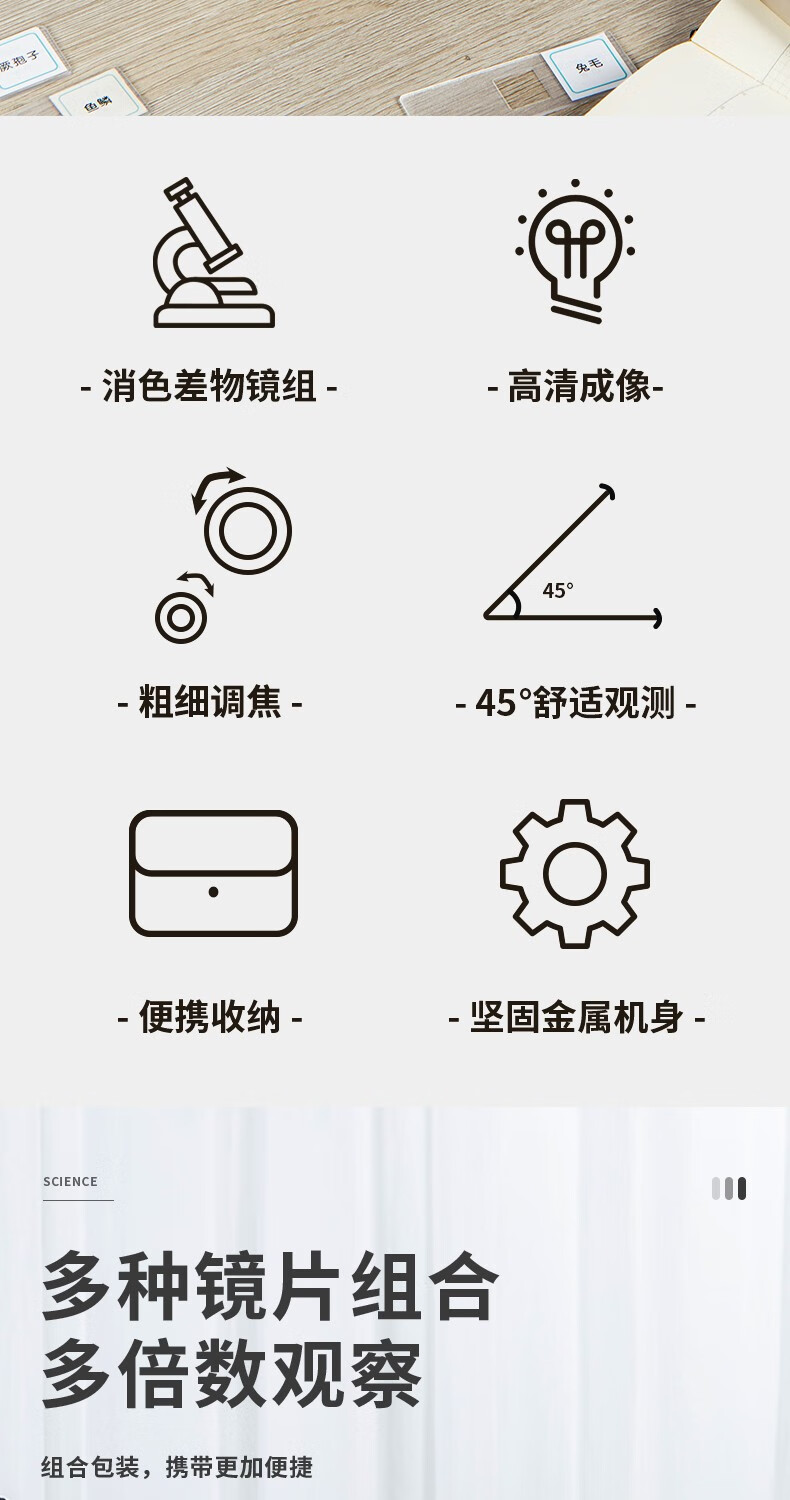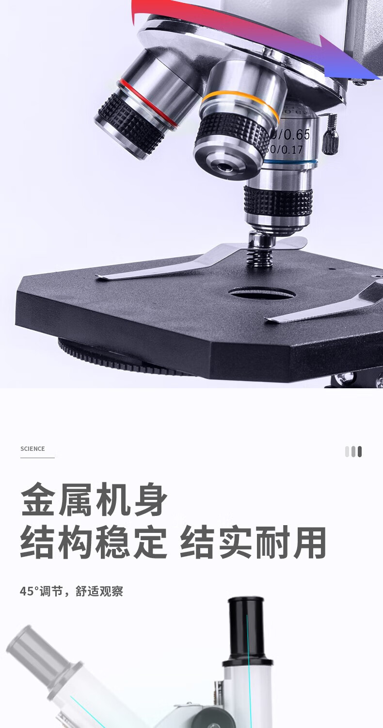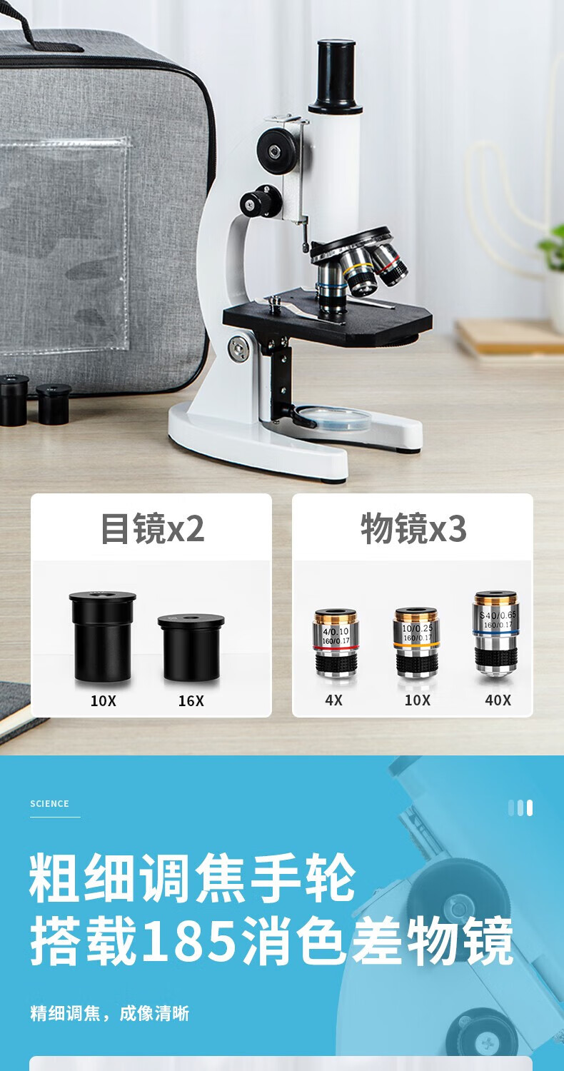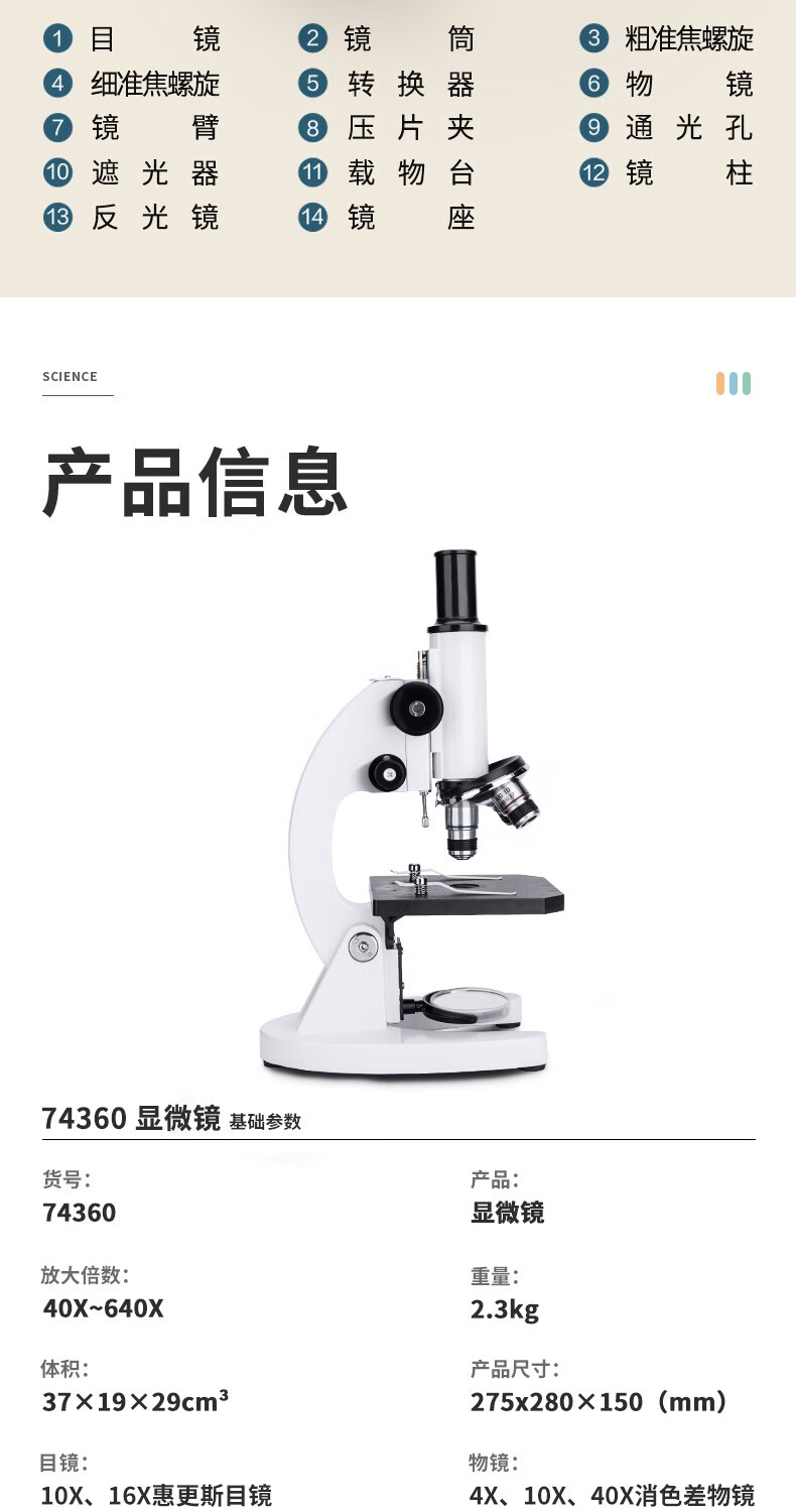 得力/deli 74360 生物顯微鏡 單目生物顯微鏡640倍專業(yè)高清小學初中生中考教學兒童生日禮物 銀色HY