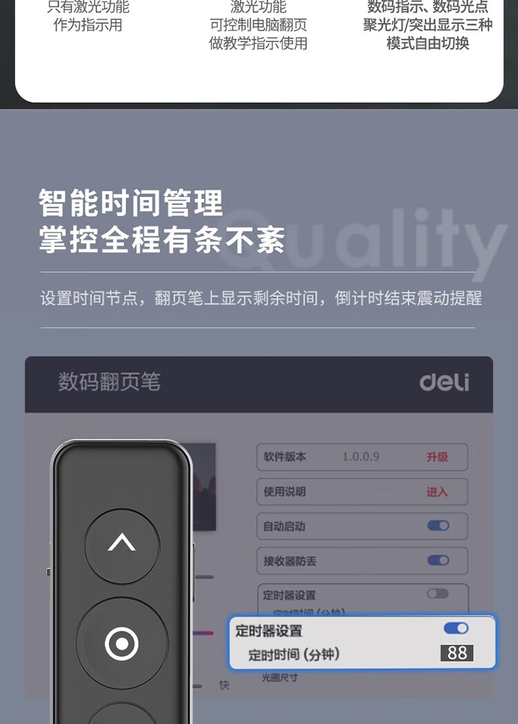 得力(deli)spotlight2.0計時提醒聚光放大凸顯PPT投影筆(非物理激光)LED液晶大屏數(shù)碼光點(diǎn)激光翻頁筆50680