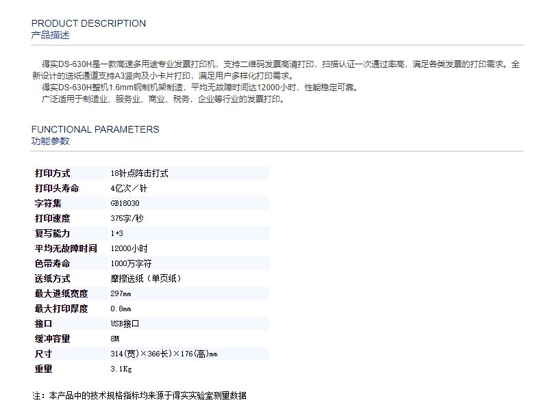 得實(shí)(Dascom)DS-630H 高速82列專業(yè)發(fā)票打印機(jī)