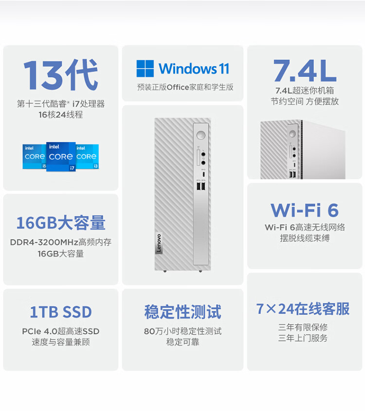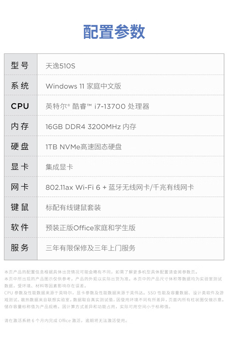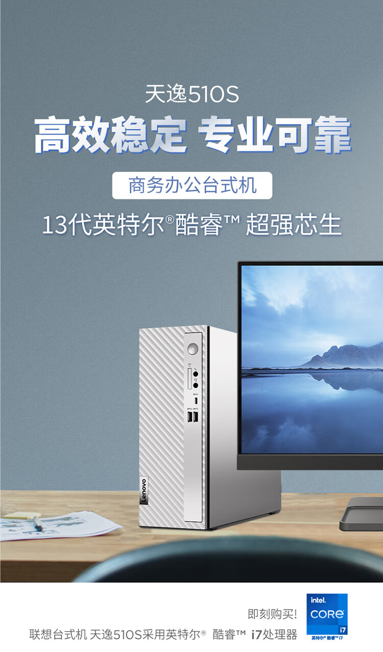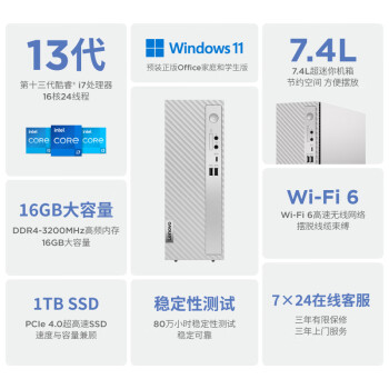 聯(lián)想(Lenovo) 510S 臺式計算機 個人商務臺式機電腦整機(13代i7-13700  16G 1TB SSD wifi win11 )23英寸